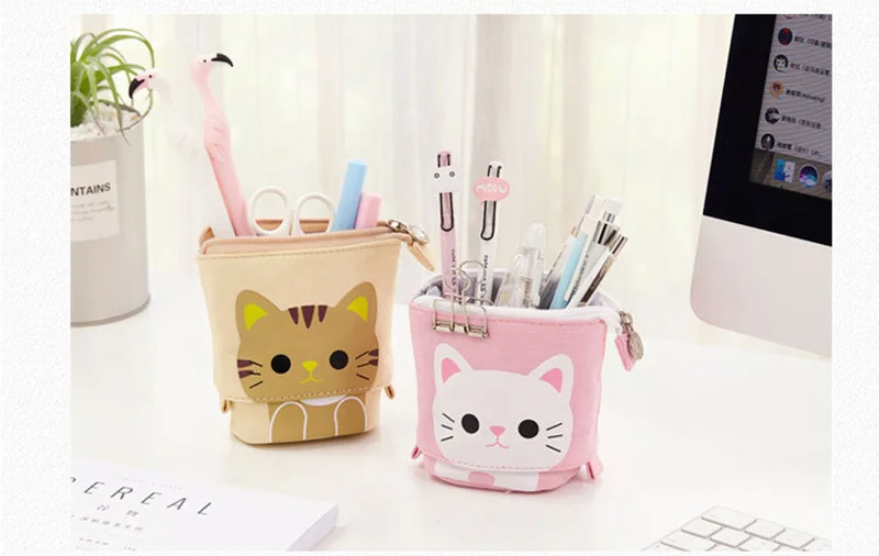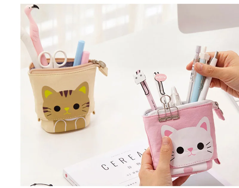 Чехол для школьного карандаша с милым котом для девочек и мальчиков, чехол для карандашей, холщовый чехол для ручек с картриджем, милый школьный чехол для канцелярских принадлежностей, корейский пенал, набор