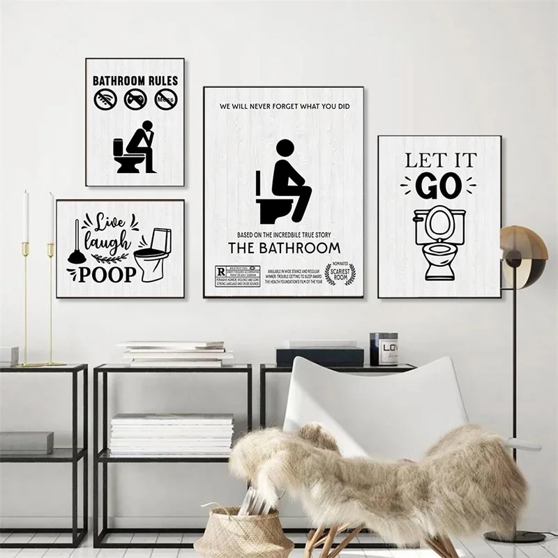 Настенная Картина на холсте с забавным принтом для туалета, настенн...