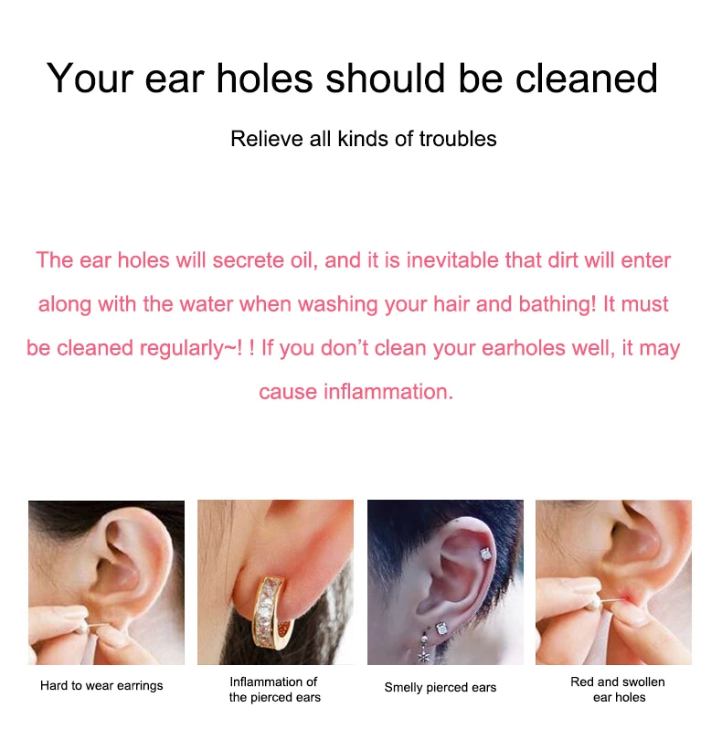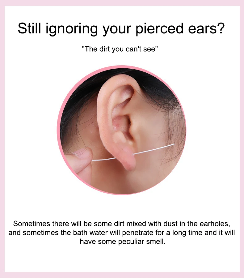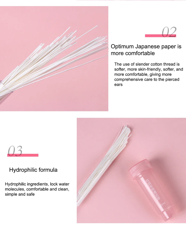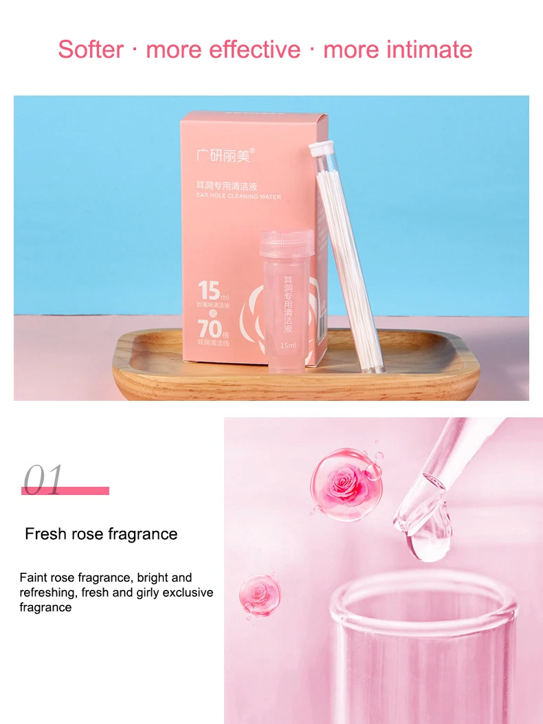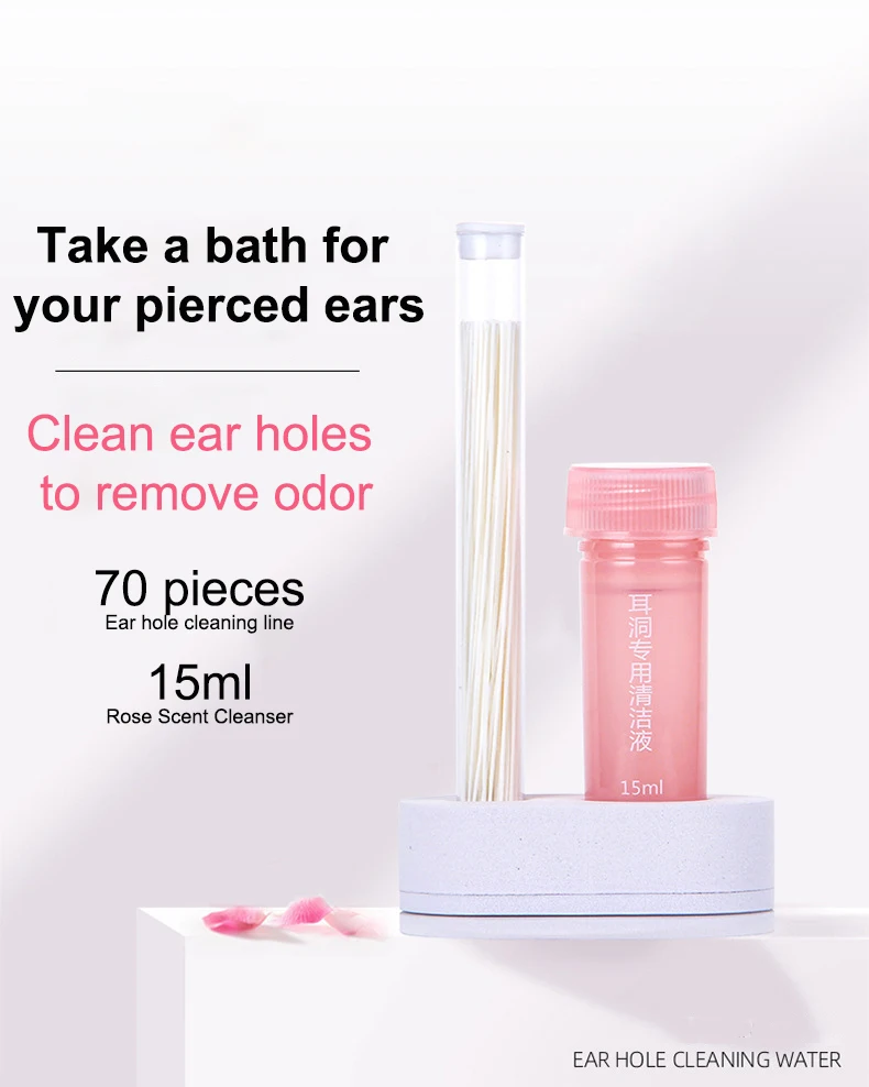 70 шт. одноразовых чистящих отверстий для серег, чистящая нить для проколотых ушей в бутылке, 15 мл, очиститель отверстий для серег, косметический инструмент для воды