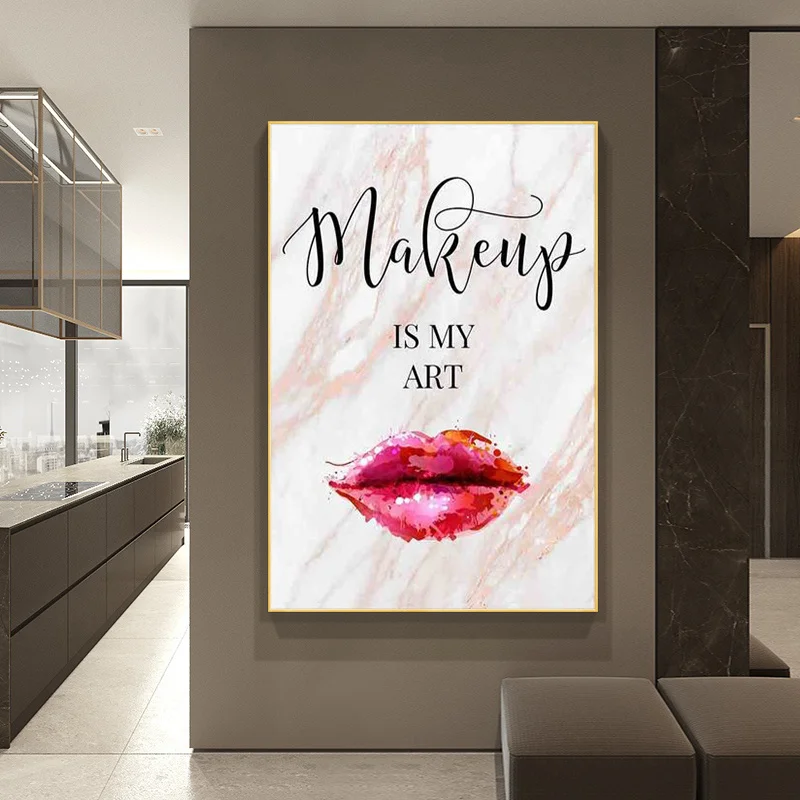 Модный постер для макияжа, холст с губной помадой, картина с цитата...