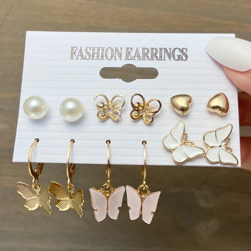Серьги сброса ретро бабочки набор для женщин мода жемчужина серьги болтовла 2021 тенденция акриловый набор серьги ювелирных изделий