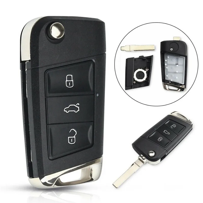Сменный Чехол-книжка для ключа с 3 кнопками, корпус на брелок, складной чехол для ключа дистанционного управления для Volkswagen Golf 7 MK7, автомобильные аксессуары