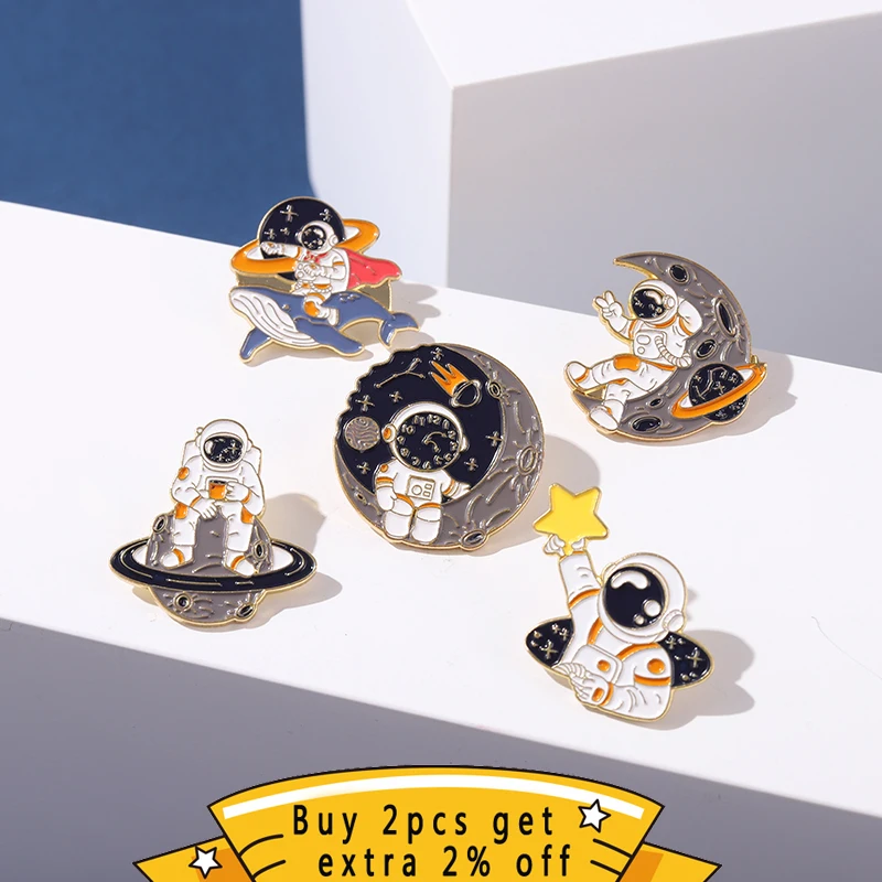 Металлическая брошь с эмалью, в форме астронавта, планеты, ракеты, ...
