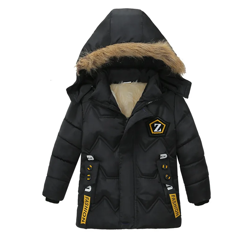 Осенне-зимняя утепленная хлопковая куртка для мальчиков, с меховым воротником