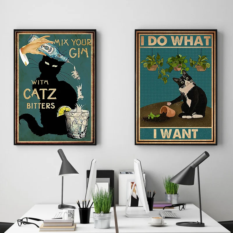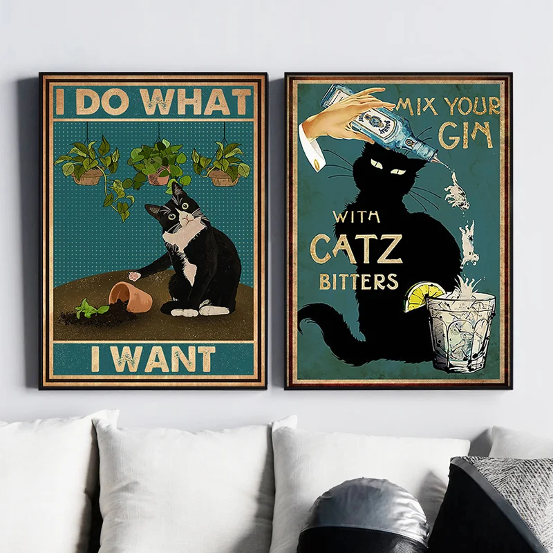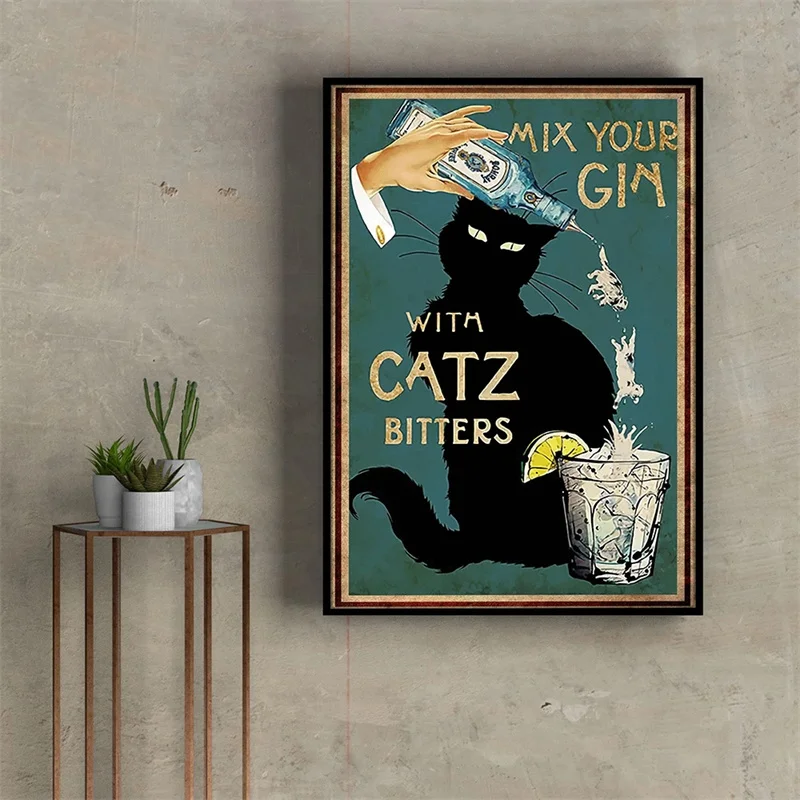 Забавная кошка, держит вино, забавные постеры, Ретро принты животны...