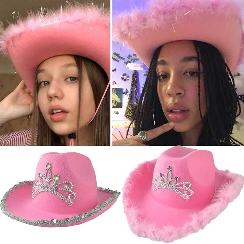 Креативная Розовая шапка-Тиара для женщин и девушек, шляпа-федора с широкими полями, ковбойская шляпа в западном стиле, шляпы для вечеринок и косплея на день рождения