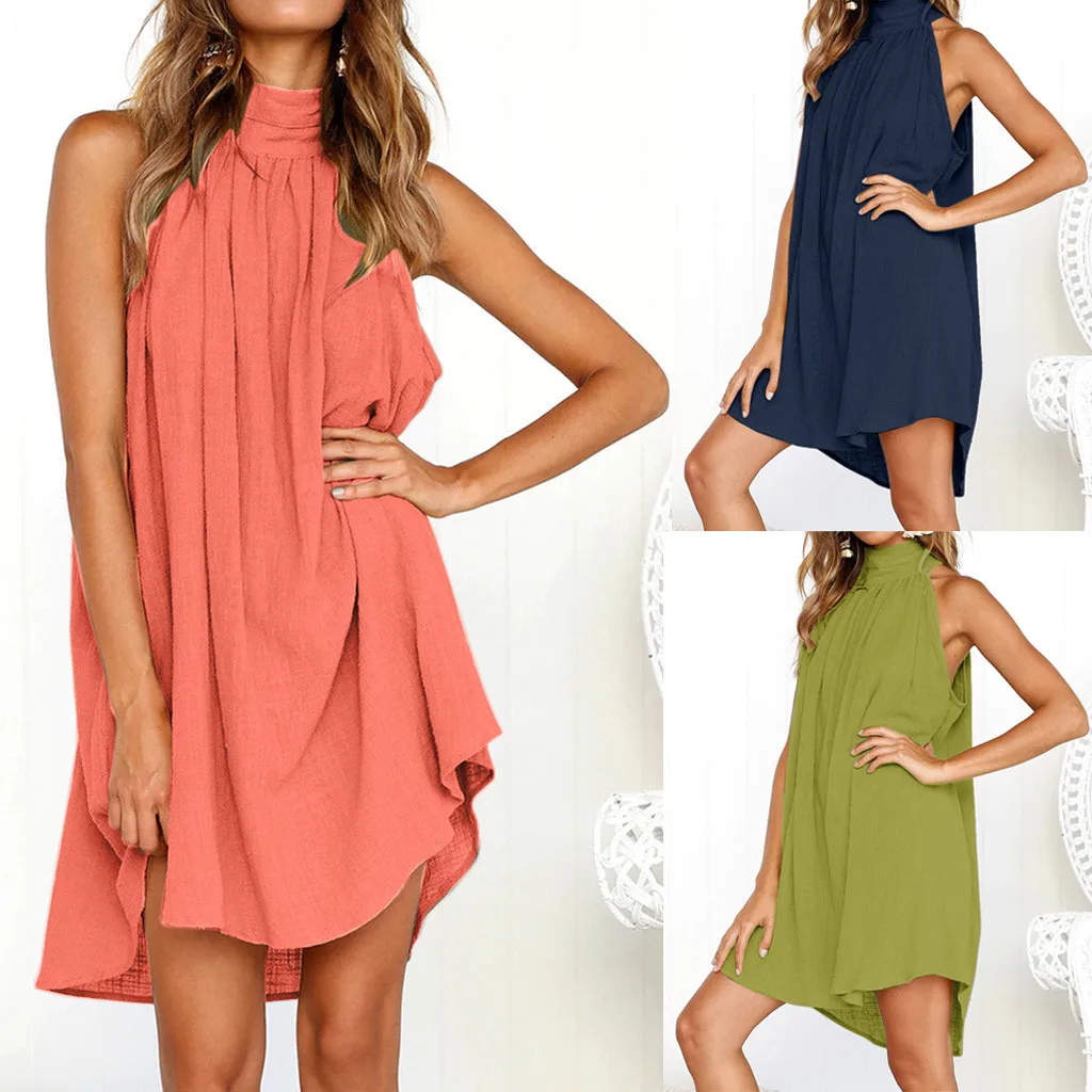 Женское праздничное асимметричное платье, летнее пляжное праздничное платье без рукавов