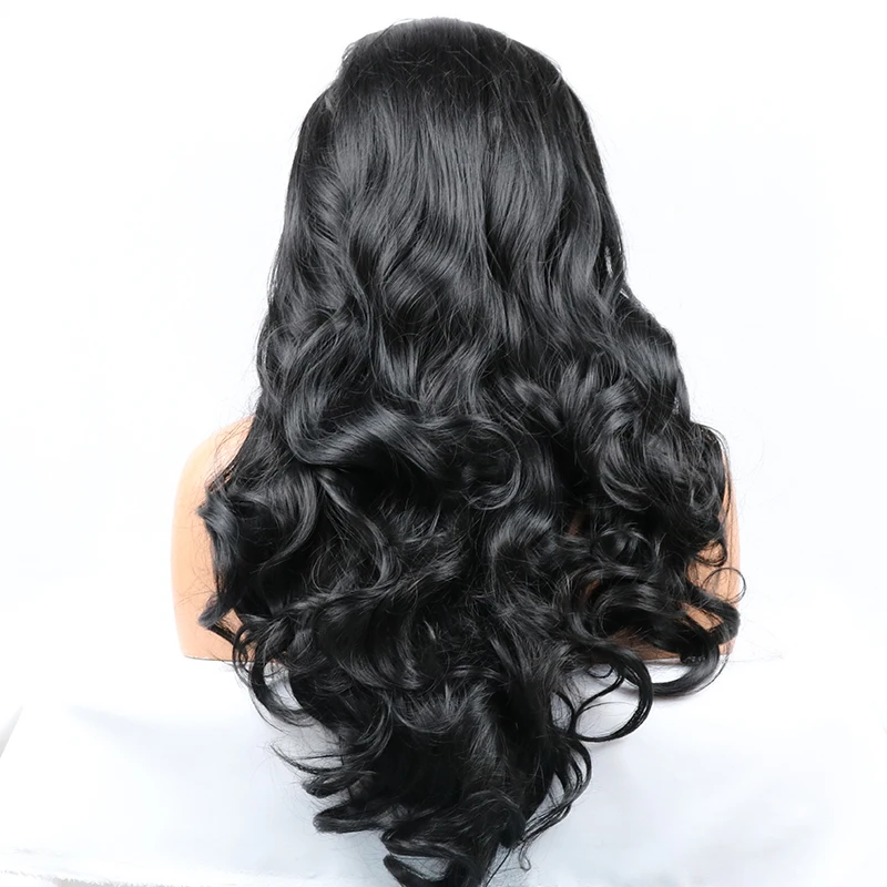 Парик с волнистыми кружевами спереди, мягкие волосы, T-часть, синтетический парик, черный струйный, предварительно выщипанный, с детскими волосами, для косплея, светящиеся узлы