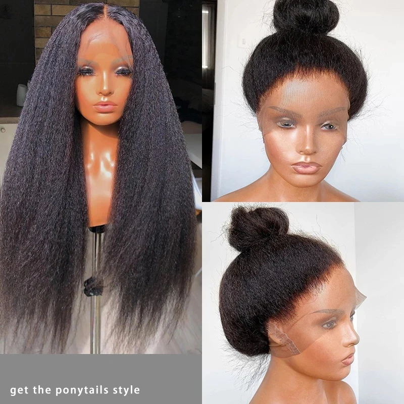 Натуральные 24 дюйма длинные курчавые Прямые Натуральные Парики Yaki, натуральный черный парик на сетке спереди для женщин, термостойкий Повседневный Косплей