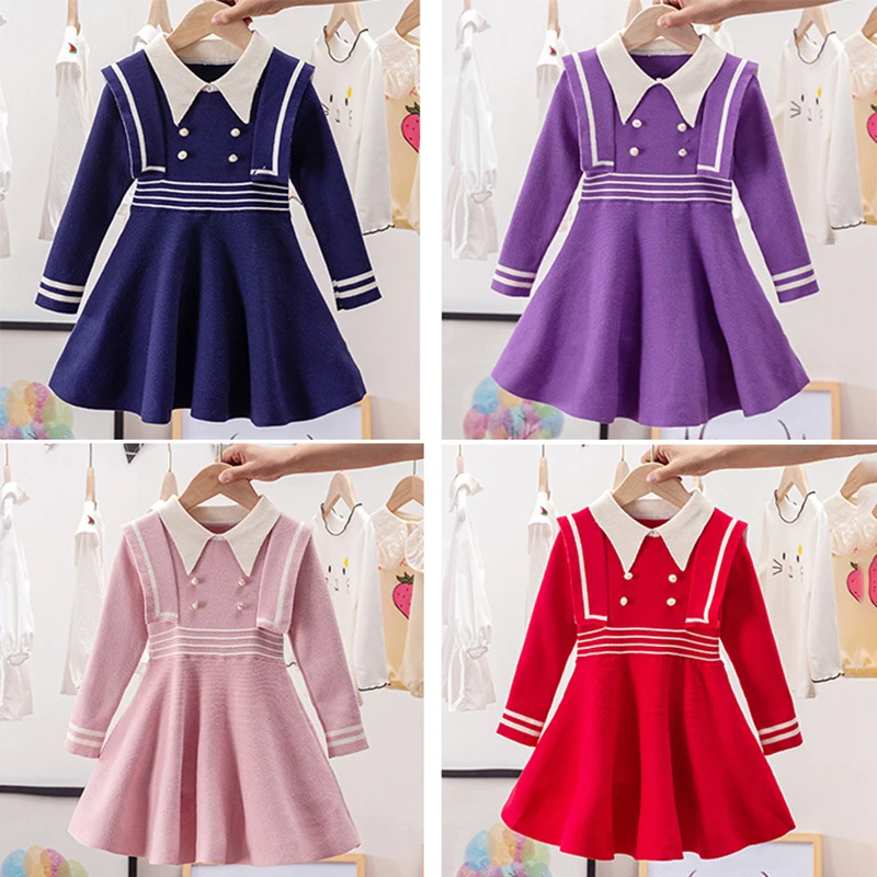 Детский осенний свитер для девочек, вязаное платье принцессы, Детская трапециевидная одежда для малышей