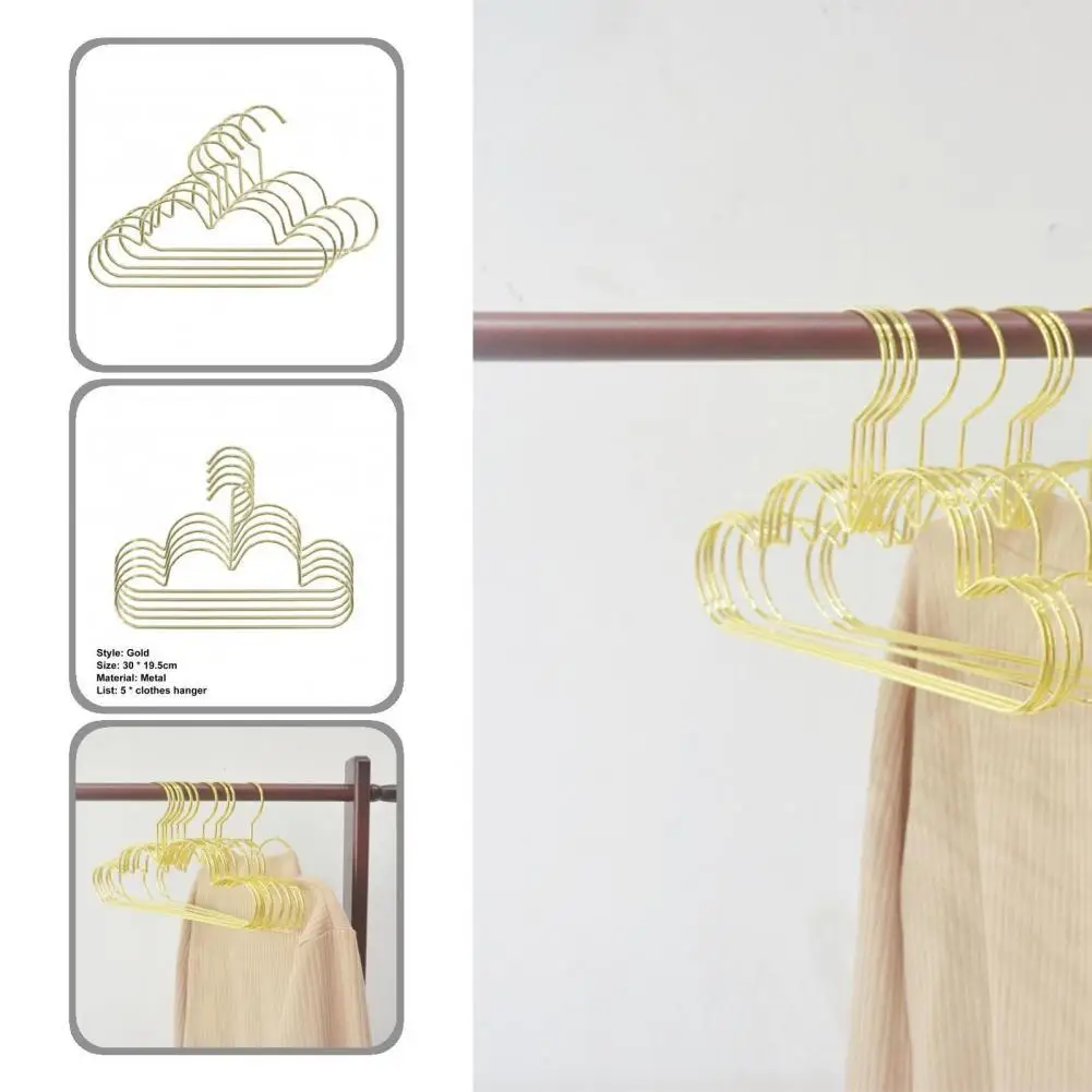 Вешалка для одежды для малышей, 5 шт.компл., золотистая Нескользящая металлическая вешалка в форме облака для экономии места, вешалка для одежды, шкаф для хранения, органайзер, стойка