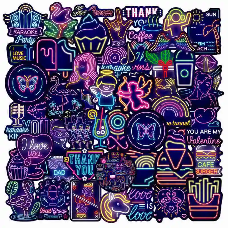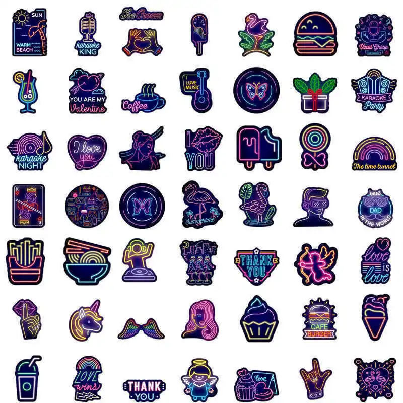 50 шт. неоновая наклейка s аниме милый неоновый светильник Vsco сти...