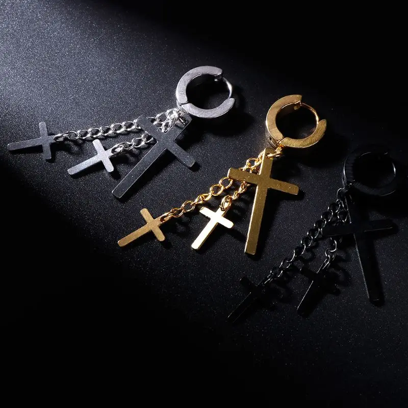 1 шт. новый дизайн панк серьги крест Подвеска Висячие длинные Висячие цепи кисточки титановая сталь для женщин мужчин ювелирные изделия Подвески Серьги