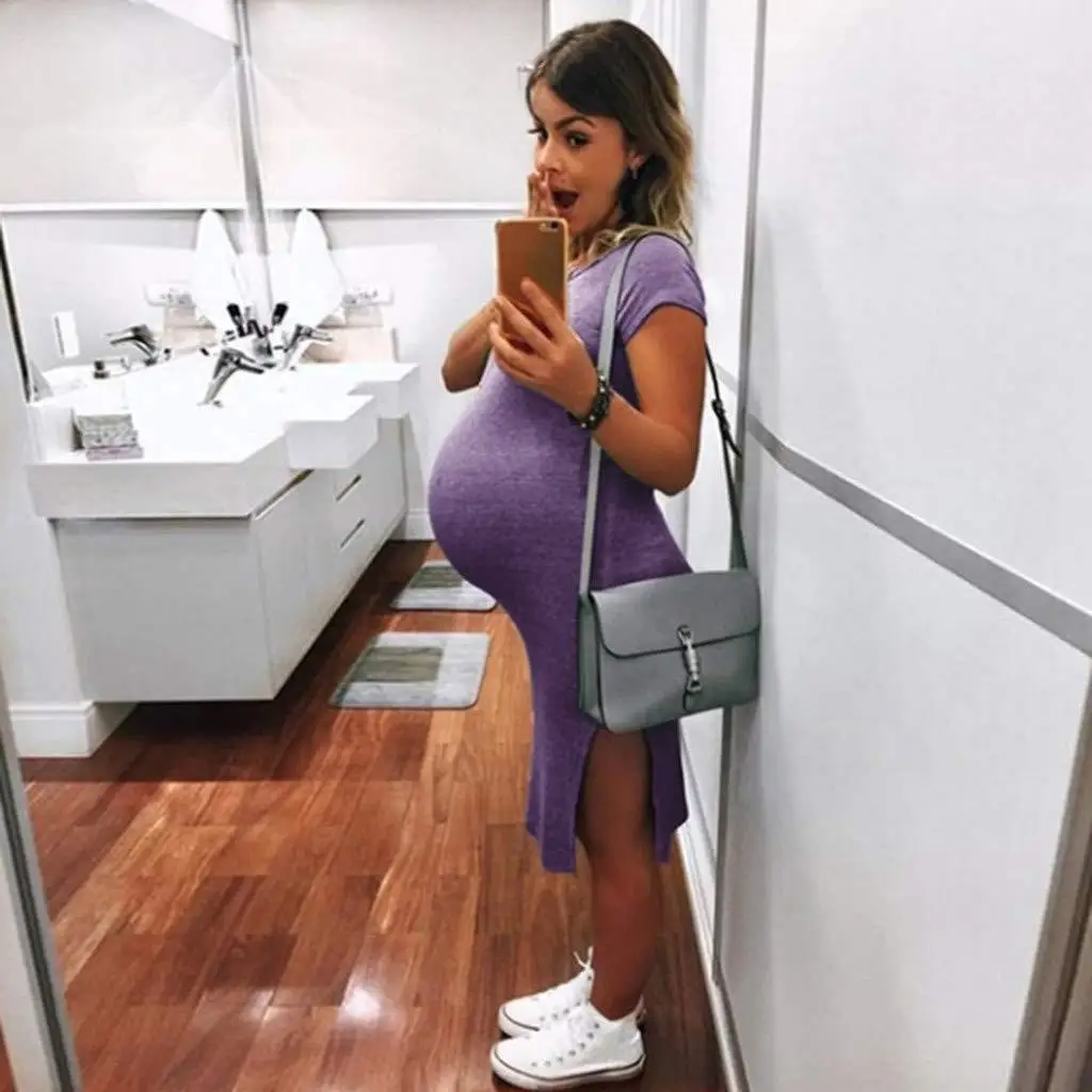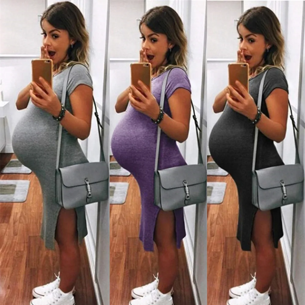 Платья с коротким рукавом для беременных милые однотонные платья дл...