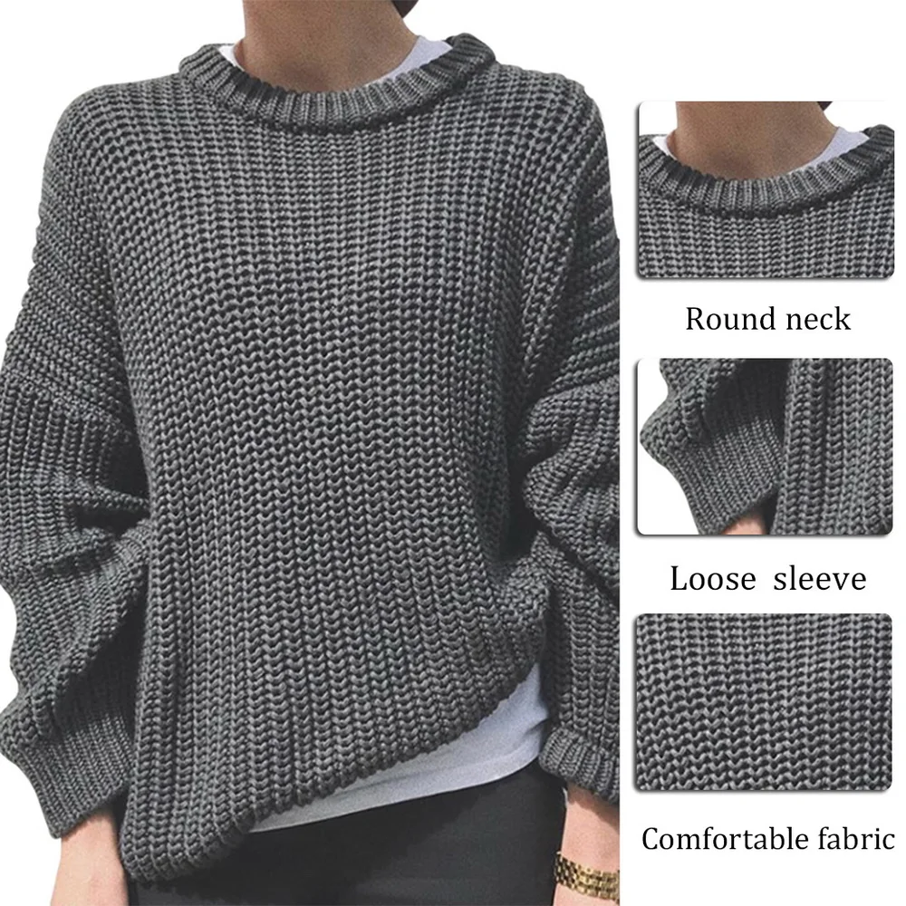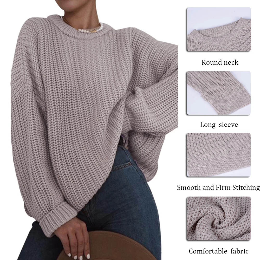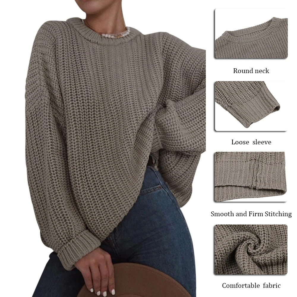 Винтажный вязаный свитер большого размера, женский элегантный плотный свободный свитер, пуловеры, женские модные однотонные вязаные топы в Корейском стиле, джемпер