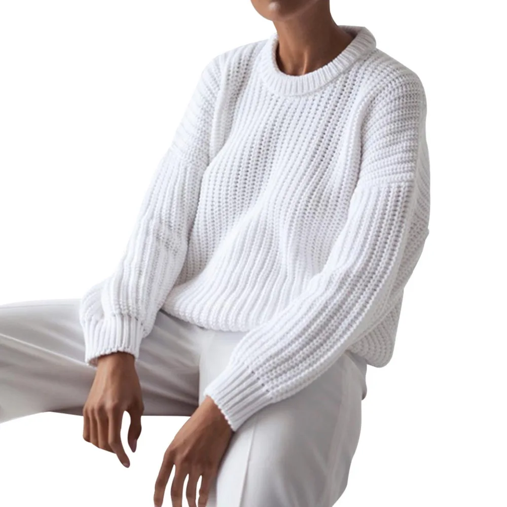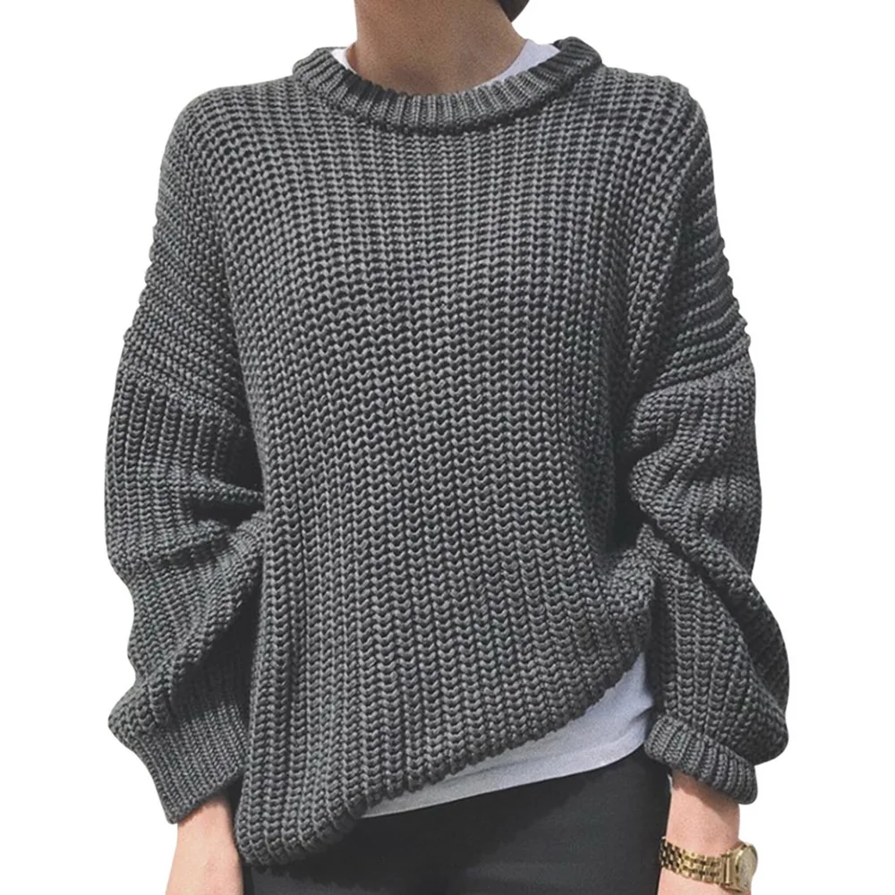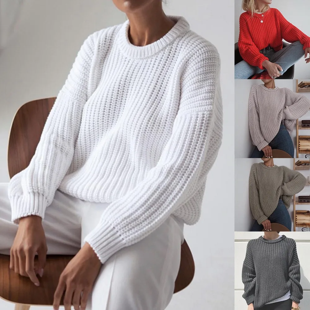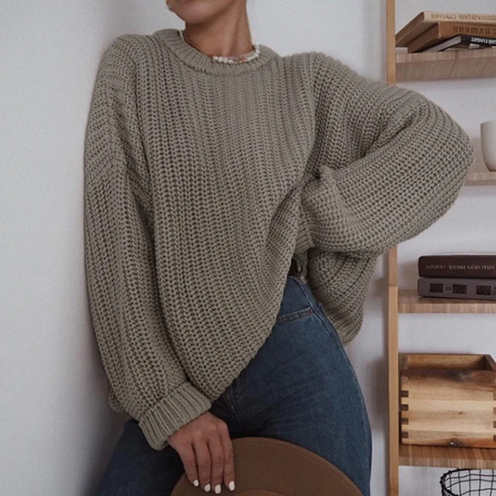 Винтажный вязаный свитер большого размера, женский элегантный плотный свободный свитер, пуловеры, женские модные однотонные вязаные топы в Корейском стиле, джемпер