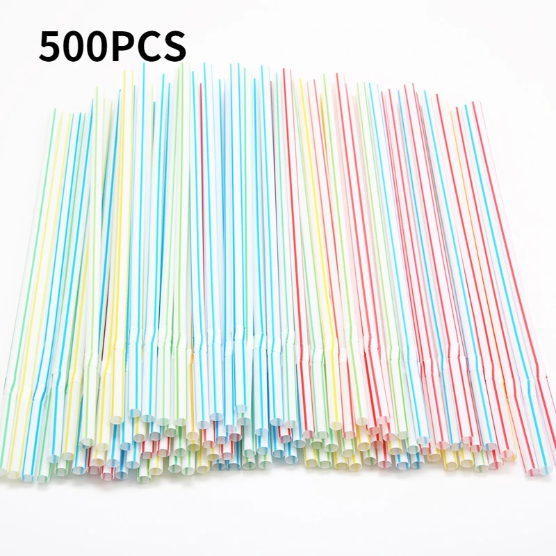 500 шт. одноразовые пластиковые соломинки, многоцветные полосатые пластиковые соломинки для напитков, товары для празднования дня рождения вечерние ринки