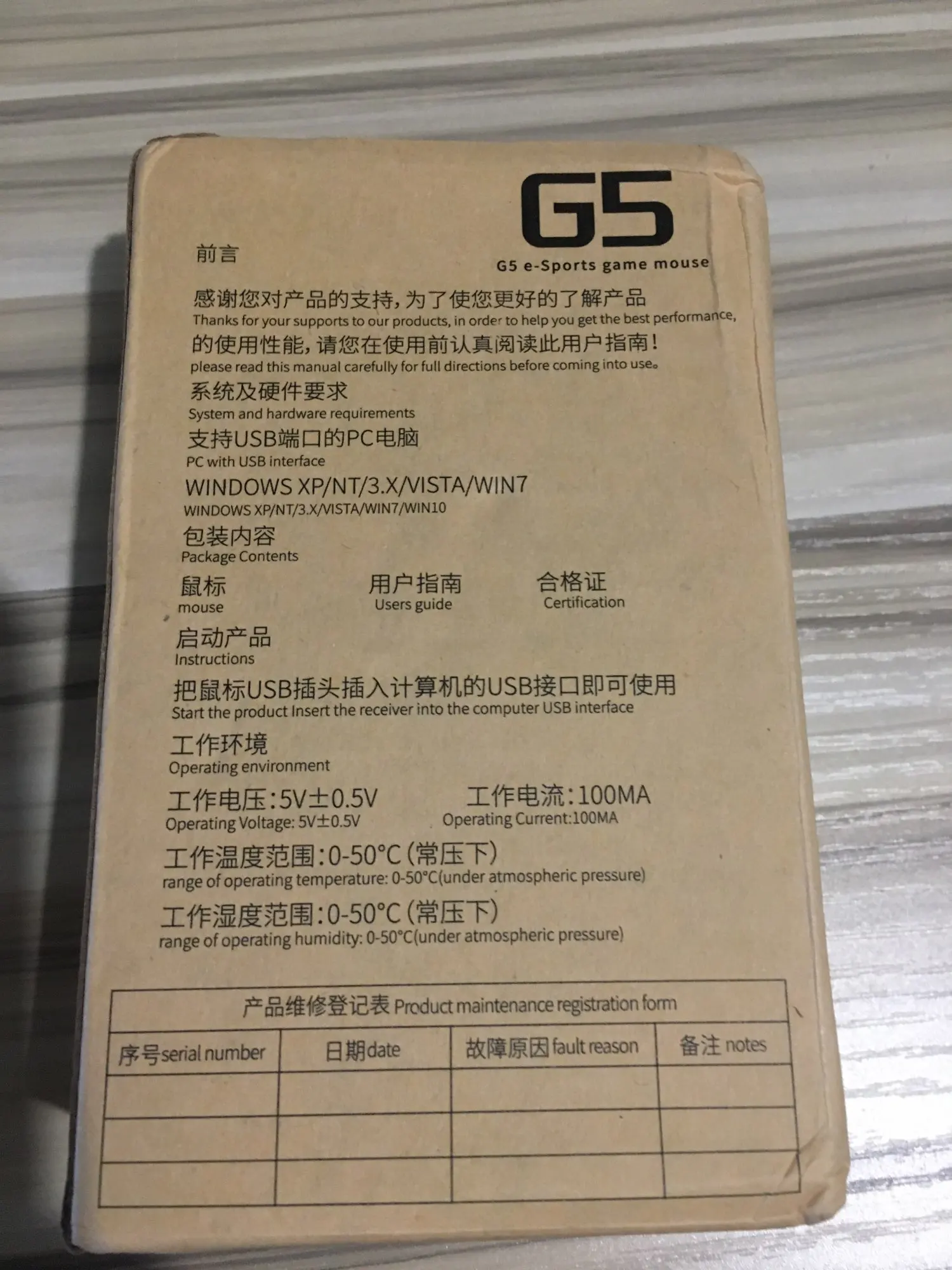 Отличный продукт и отличное качество, продукт, как описано модель G5 с 3 скоростями DPI, светодиод чередует цвета, отличная мышь еще больше цена оплачена 9,90, прибыл в течение 10 дней здесь в RJ