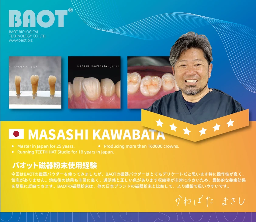 Двадцать лет назад одна группа людей, расположенная на западном побережье реки Перл в провинции Гуандун, где также находится место рождения китайского революционного пионера г-на Сунь Ят-сена, начали различные Элитные исследования неорганических материалов из-за одной мечты догнать передовые международные технологии. Исследование охватывает такие материалы, как высокая теплопроводность нитрида алюминия, используемые для подложек, износостойкие материалы PPM класса, диоксид титана самоочищающиеся материалы, зубной фарфоровый порошок и т. Д.Время прошло день за днем, но они испытали повторные сбои, один проект за другим. В то время они были очень твердыми и почти безнадежно. Однако они никогда не сдавали. Прошло более десяти лет, и один день, один проект наконец-то был успешным. Да, это единственный успешный проект-фарфоровая пудра BAOT.Да, из-за упорства, люди BAOT двигали Бога.Компания развивалась здоровым образом и теперь имеет стандартный цех, центр исследований и разработок и высококачественную лабораторию. Как Провинциальное высокотехнологичное предприятие, BAOT имеет учёных, старших инженеров, возвращенных из-за рубежа. Среди членов команды 41% из них имеют университетское образование.BAOT постоянно обогащает свою линейку продуктов, не только предоставляет лучший сервис клиентам по всему миру, но и помогает клиентам создавать более ценное пространство.В настоящее время стоматологический фарфор BAOT доступен в более чем 70 странах и регионах.BAOT имеет различные глобальные сертификаты, такие как Национальная производственная лицензия, Национальный сертификат регистрации продукта, ISO 13485, CE, FDA и другие страны. Кроме того, компания имеет основные технологии фарфорового порошка, патент на изобретение и другие патентные сертификаты.Для получения дополнительной информации, пожалуйста, посетите www.baot.biz и свяжитесь с нашими сотрудниками, как показано ниже.