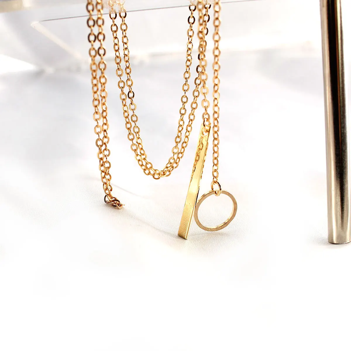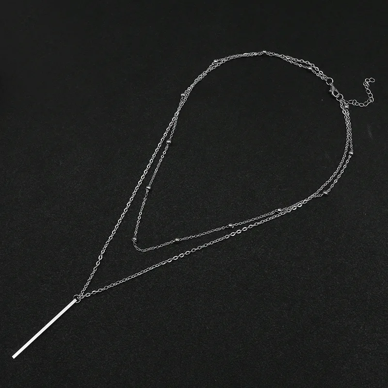 Женское Ожерелье с двойной подвеской, длинная цепочка, ажурное круглое ожерелье из нержавеющей стали в виде багета