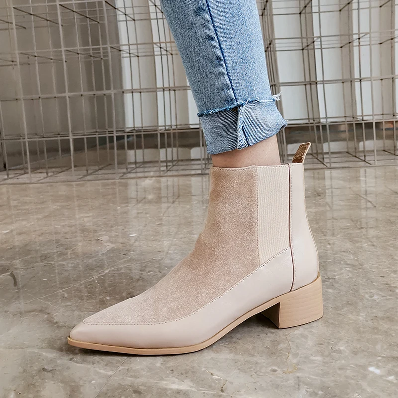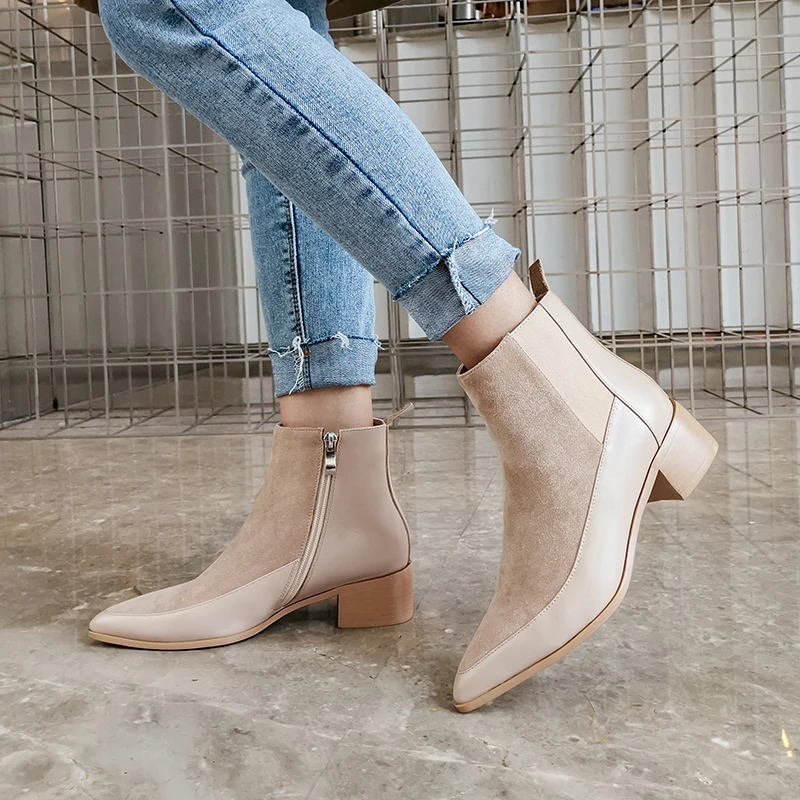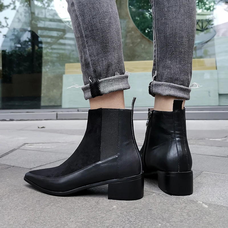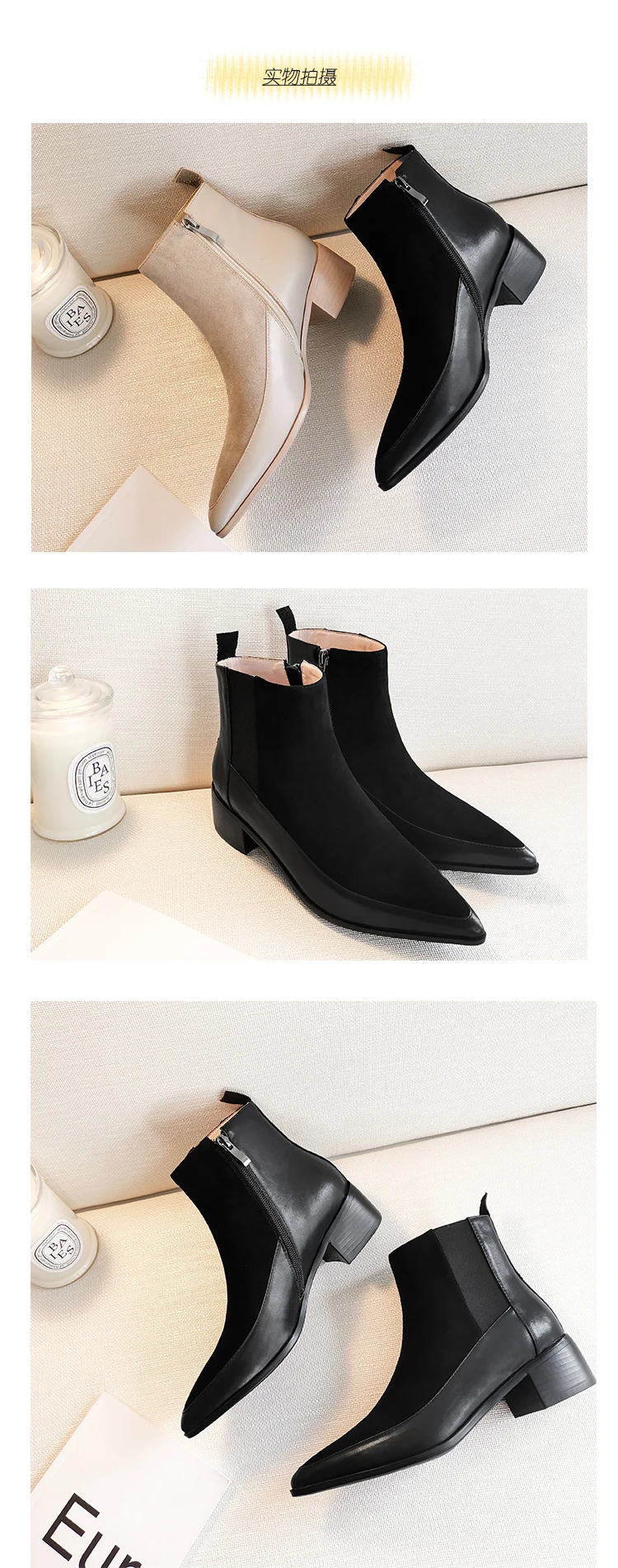 Женские ботильоны из натуральной кожи, длина стопы 22-26,5 см, кожаные ботинки челси с острым носком, весна-осень