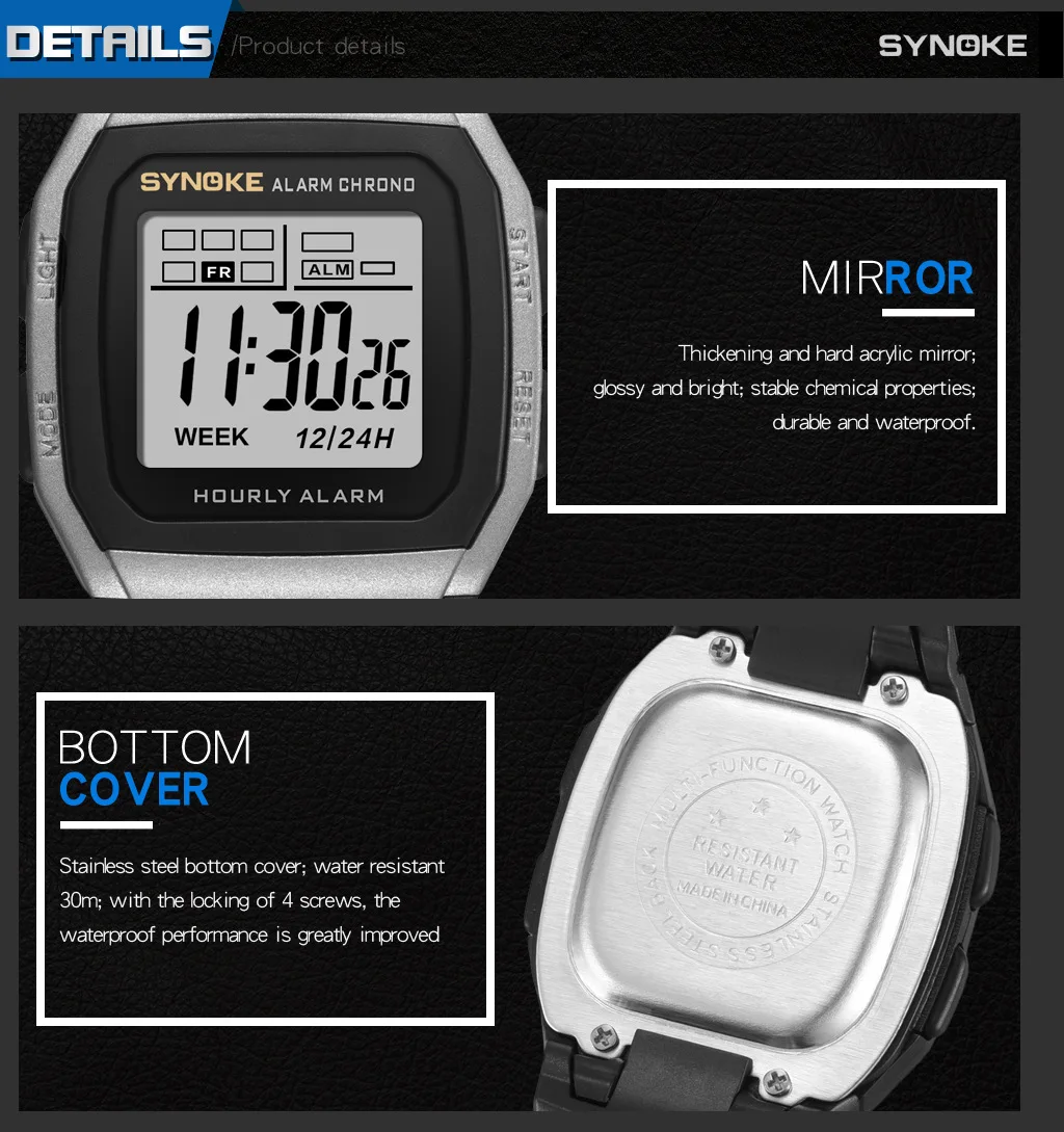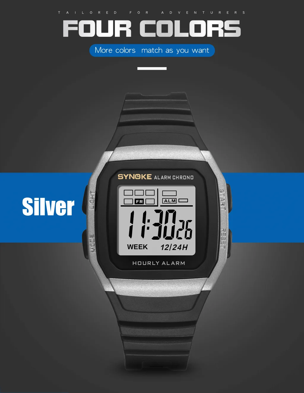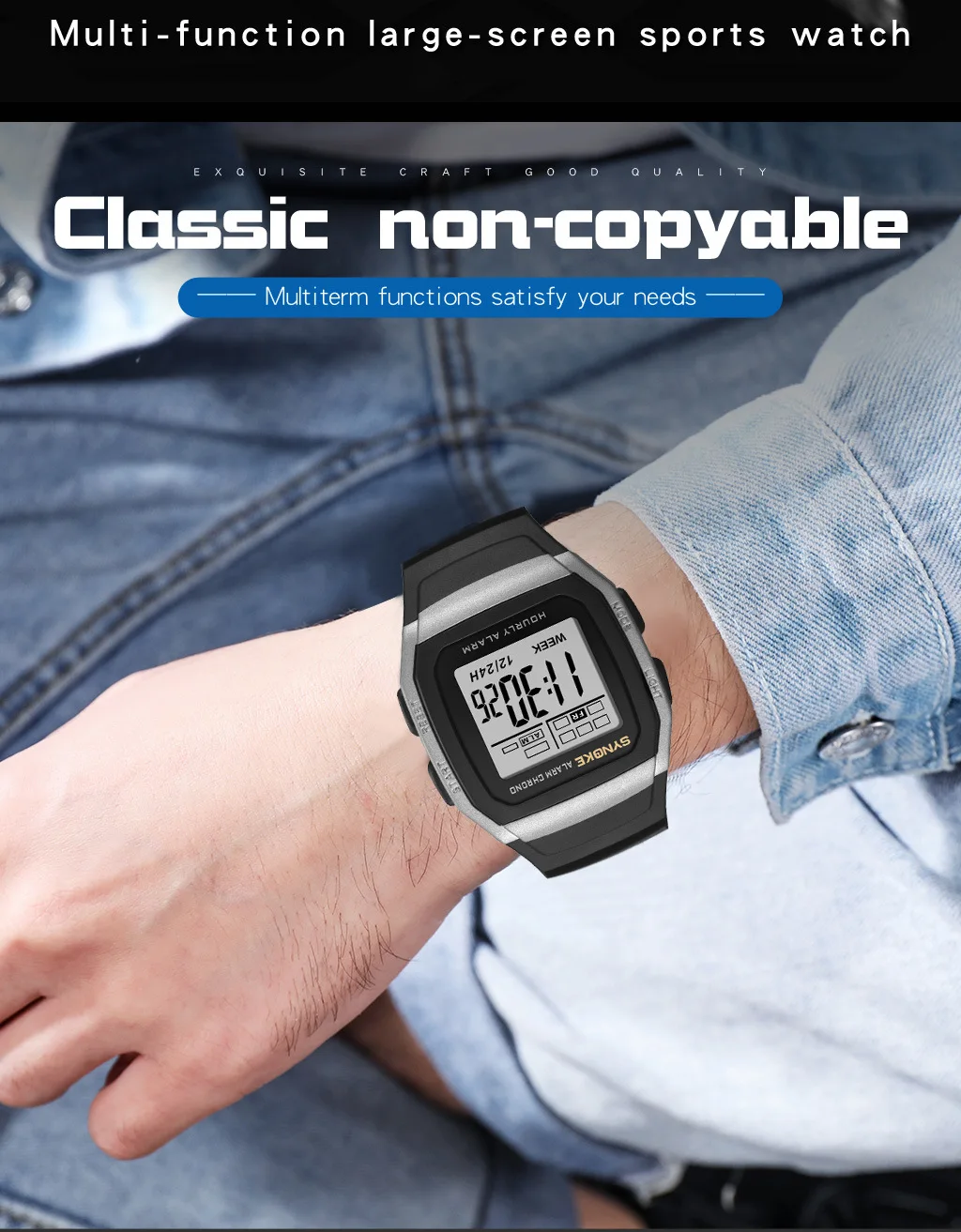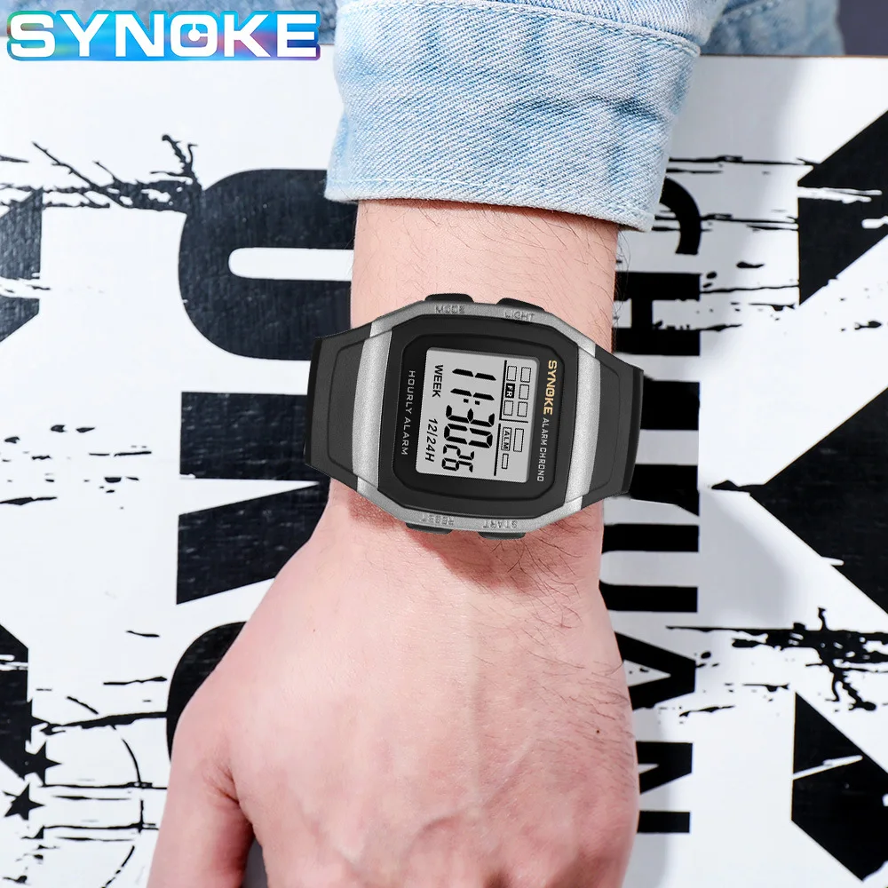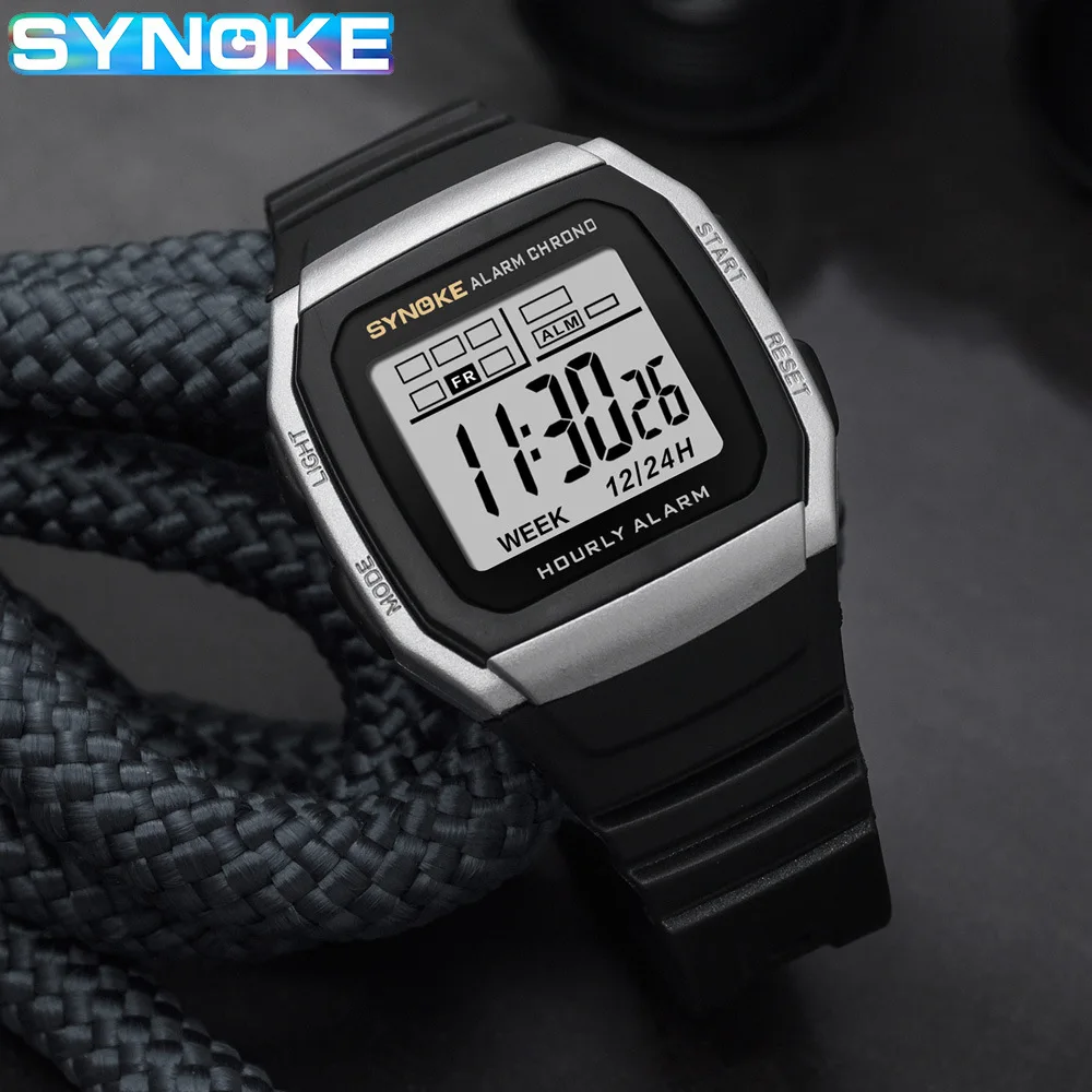 Электронные часы для спорта на открытом воздухе мужские светящиеся серебристые многофункциональные часы Ретро квадратные часы студенческие модные уличные часы