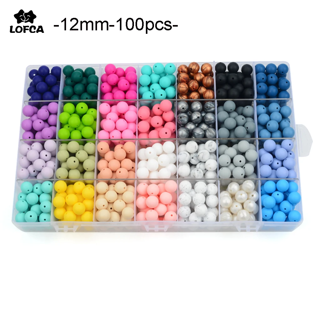 LOFCA 12 мм, 100 шт., силиконовые бусины для прорезывания зубов, детское ожерелье для кормления грудью, зажим для соски без бисфенола