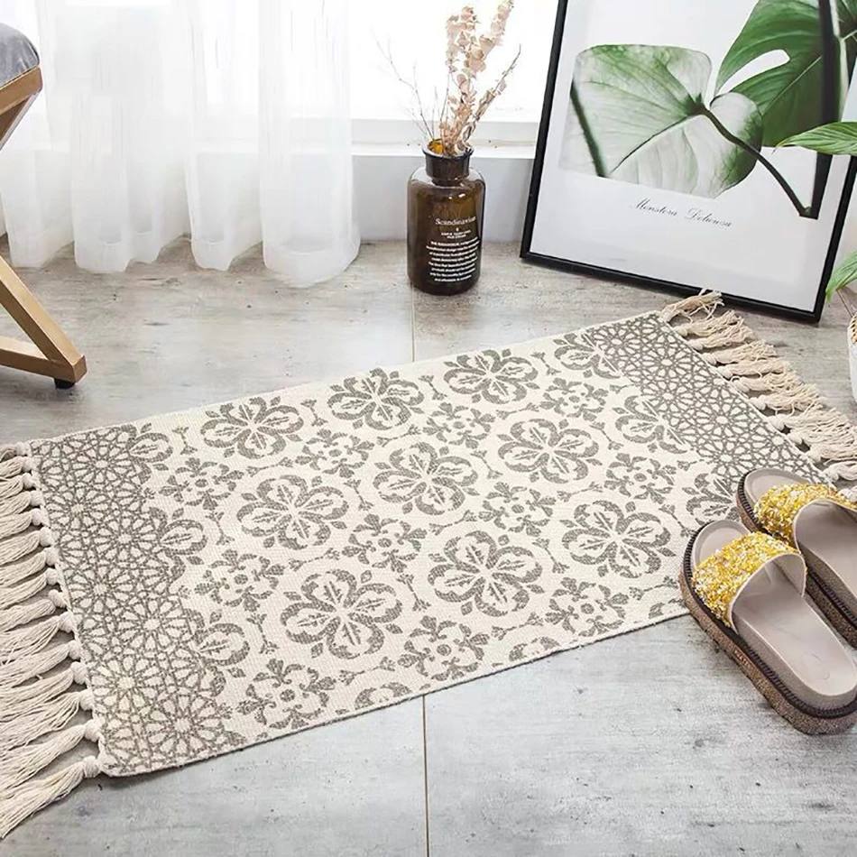Кухонные коврики в стиле бохо, коврики для гостиной, ручная работа, искусственный винтажный хлопковый льняной коврик, напольный коврик, вход в прихожую, спальню