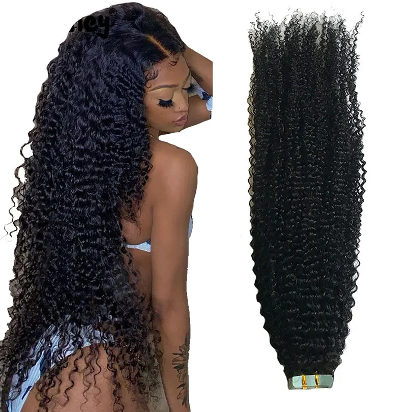 Афро кудрявые вьющиеся ленты для наращивания человеческих волос монгольские неповрежденные Натуральные Цветные волосы невидимые бесшовные инъекции
