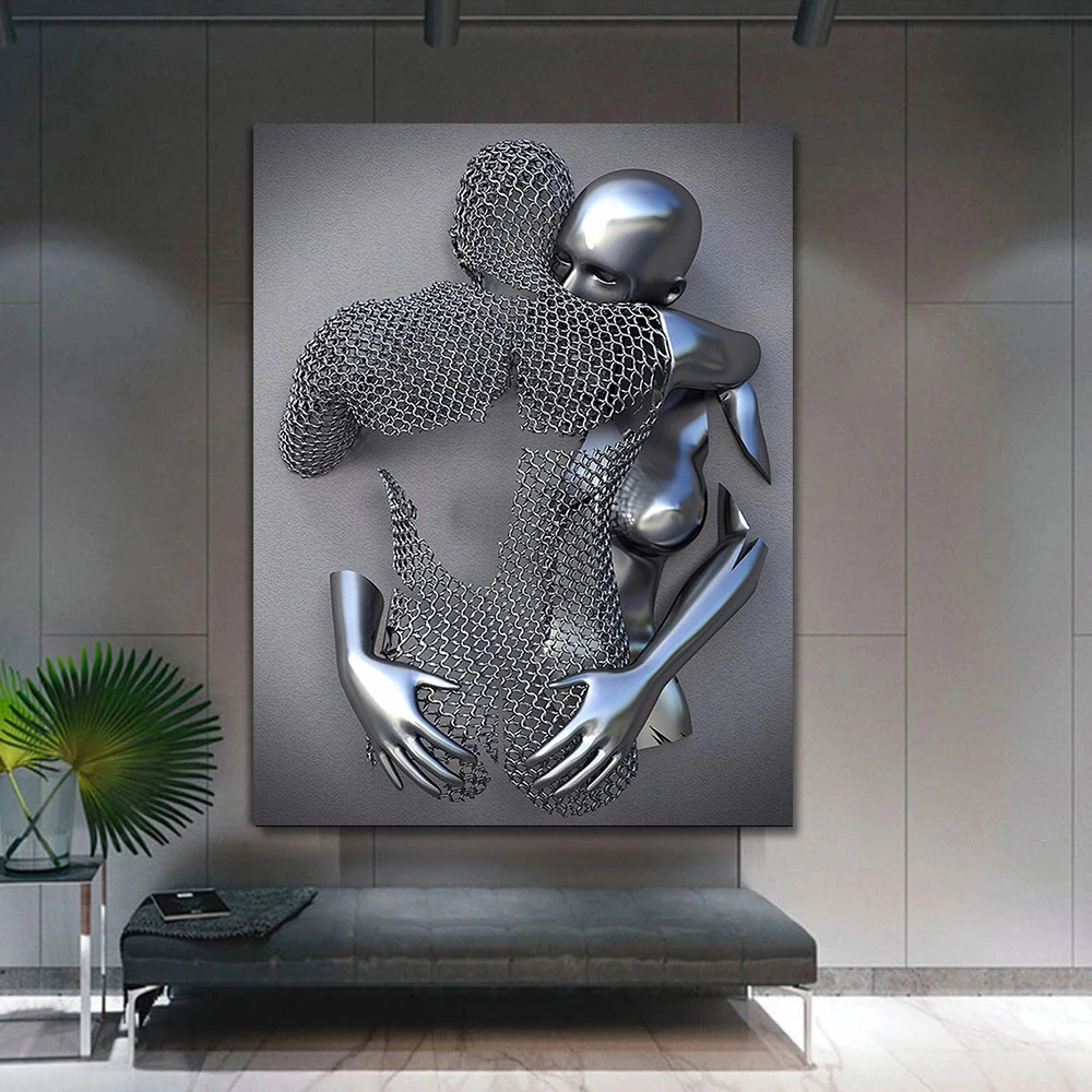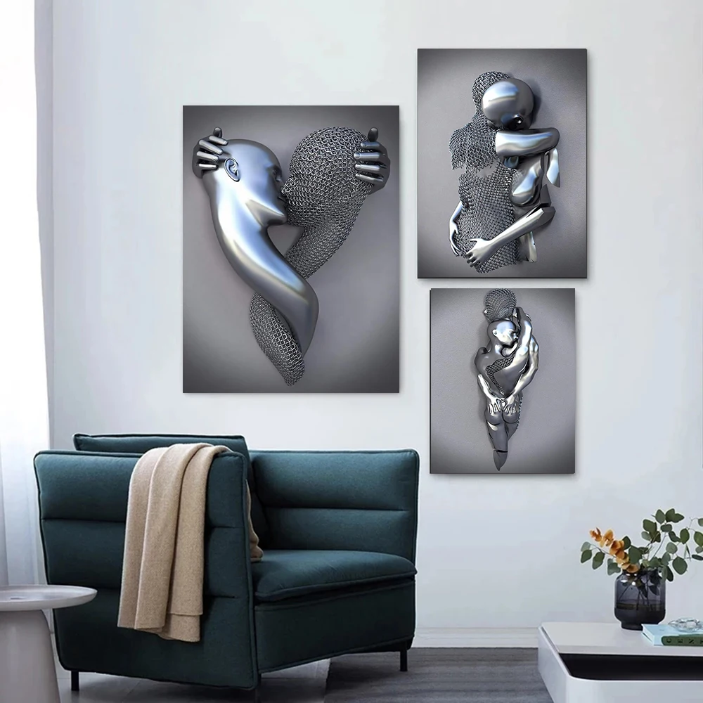 Современные серебряные обнимающие постеры и принты для пар скандинавские фигуры настенная Картина на холсте картины для гостиной домашний декор