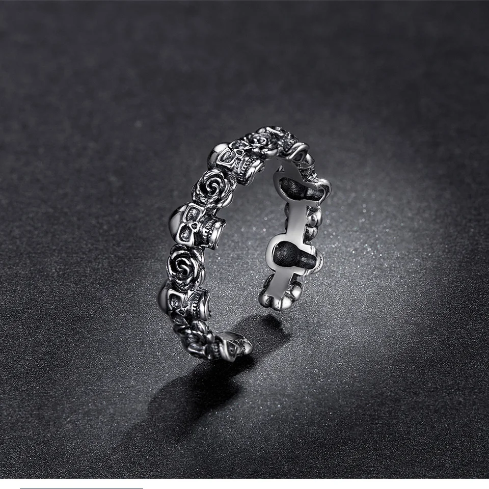 ❤Вес: 3 г❤【Размер 】подходит для размера 5 ~ 8 (49,3 мм-57 мм)❤【Материал】 100% Стерлинговое Серебро 925 пробы + окисление❤【Случай 】хэллоуин, юбилей, косплей, вечеринка❤【Стиль 】классика, ретро, панк, мода❤Oxiокисленное серебряное Открытое Кольцо украшено трехмерными розами и черепами. Это уникальный, винтажный и полный загадочной атмосферы Хэллоуина.❤【Для подарка 】 1 шт. кольца из стерлингового серебра 925 пробы и 1 шт. Подарочный пакет, который является идеальным лучшим подарком для себя, сестры, жены, лучшего друга, подружек.