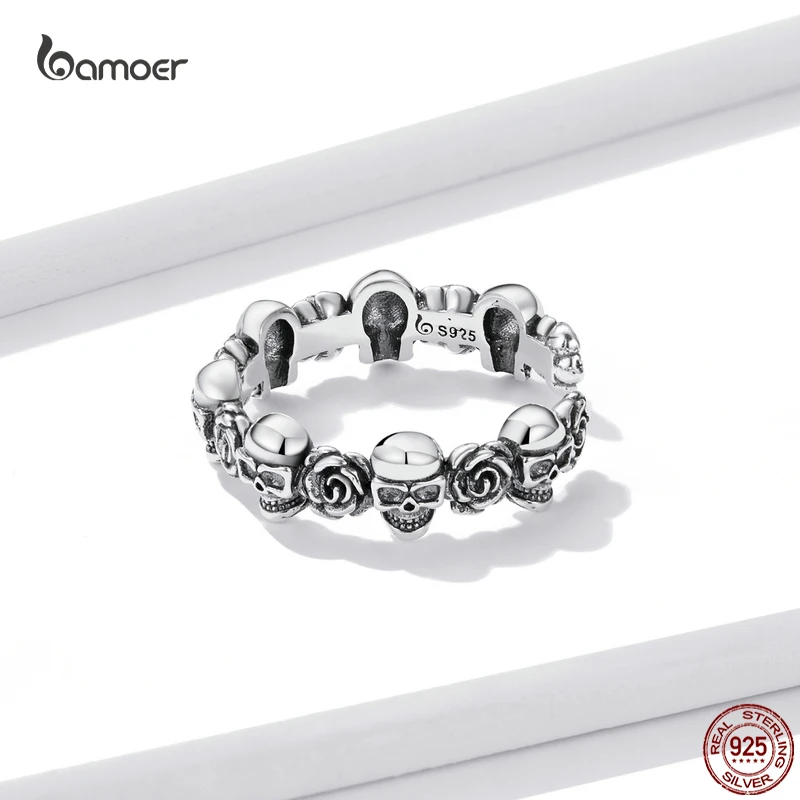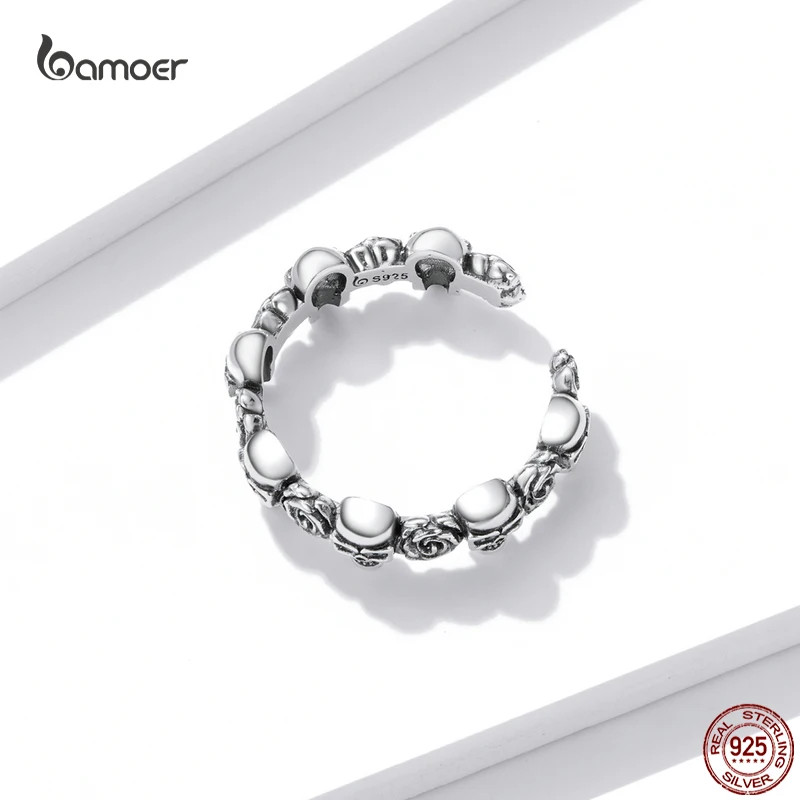 Женское кольцо с черепом Bamoer, классическое винтажное регулируемое Открытое кольцо из настоящего серебра 925 пробы на Хэллоуин