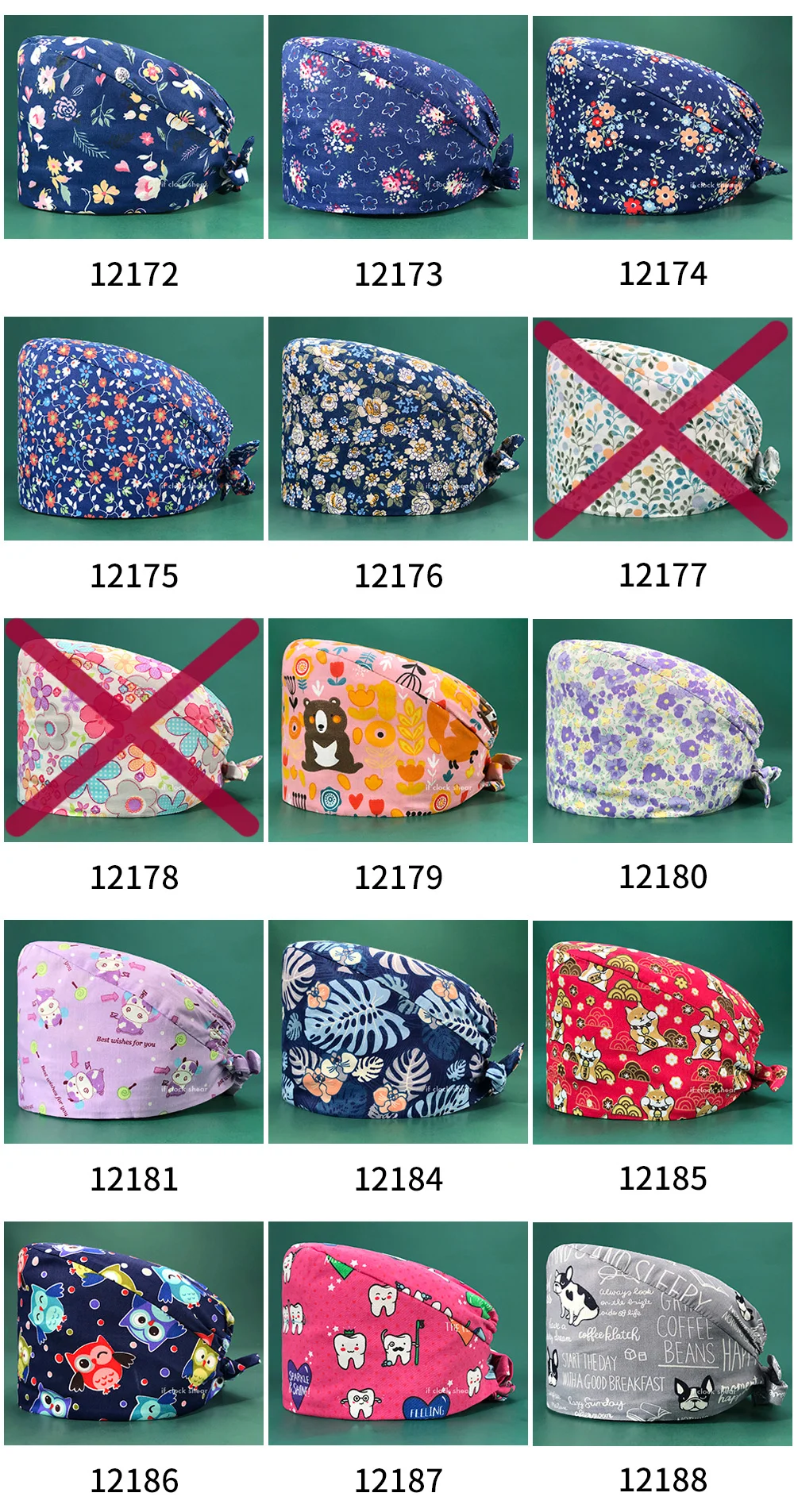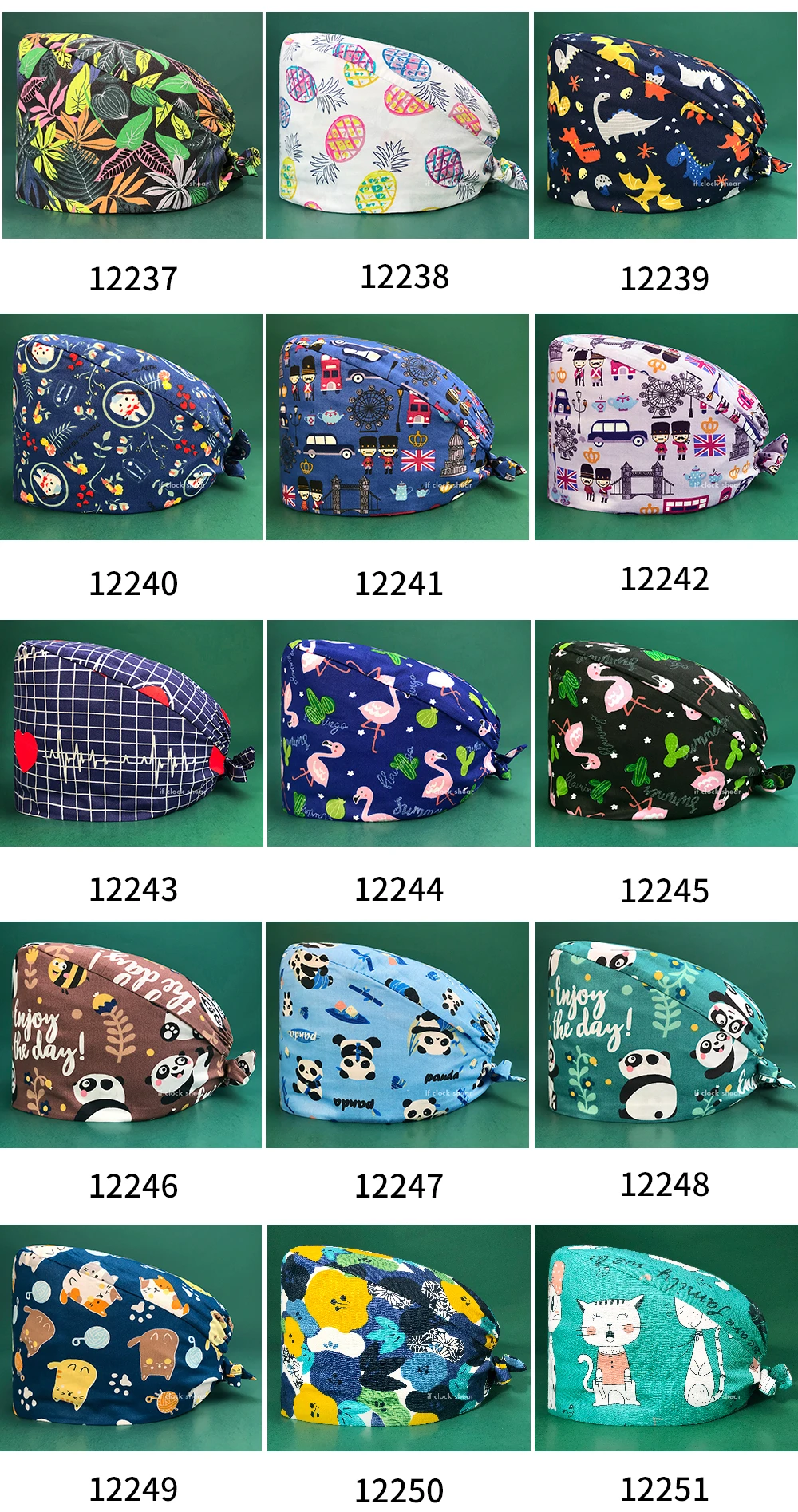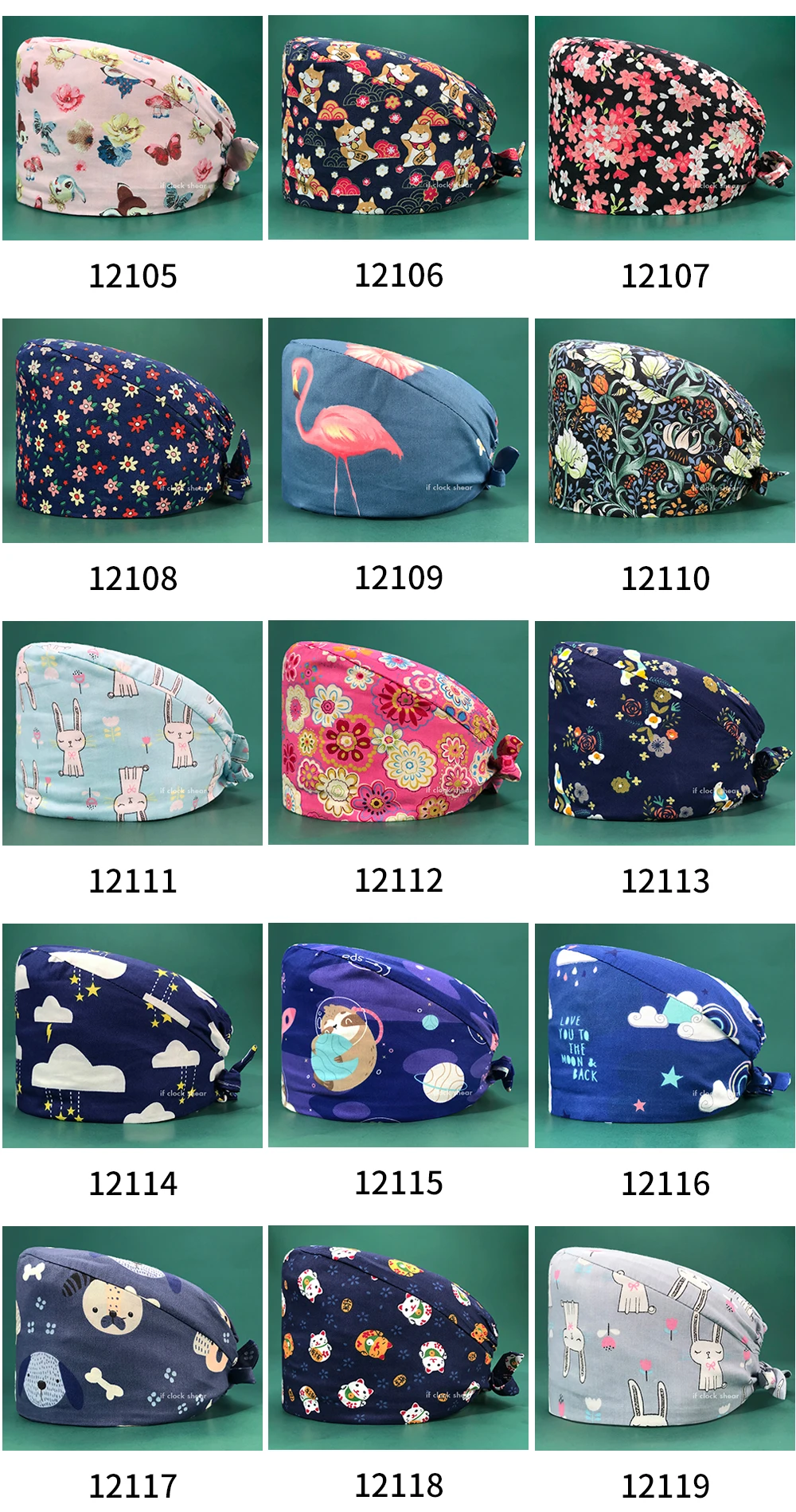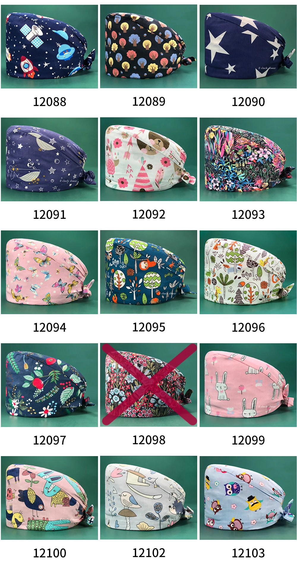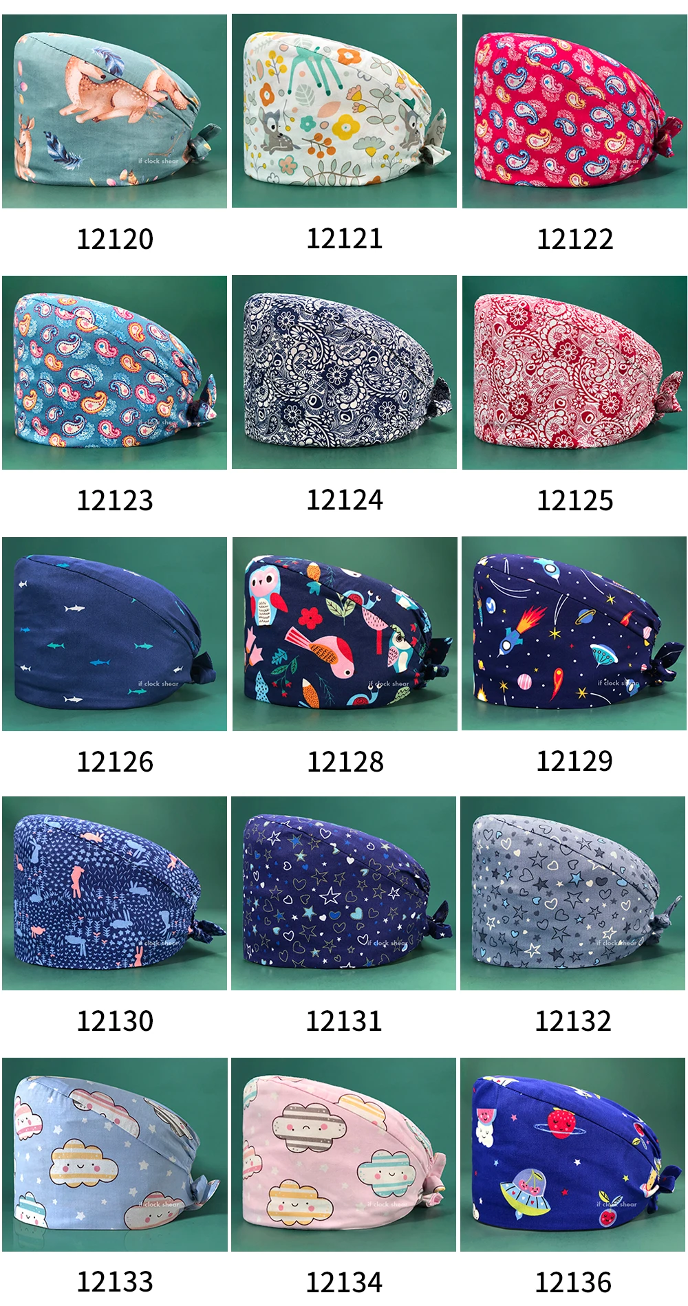 Впитывающая пот Модная хлопковая шапка с принтом для медсестер шапк...