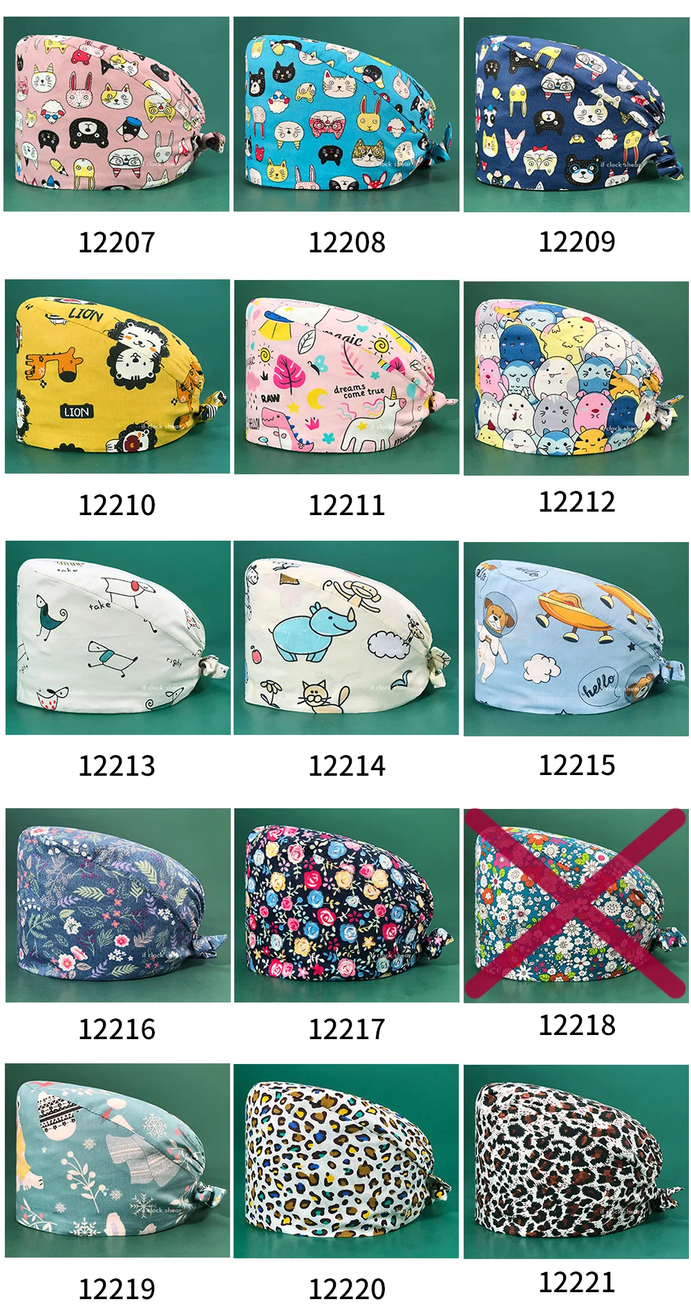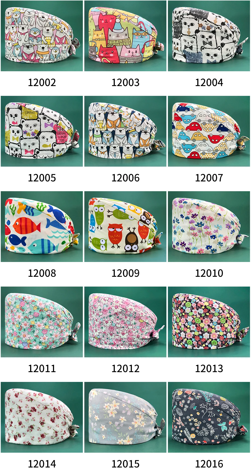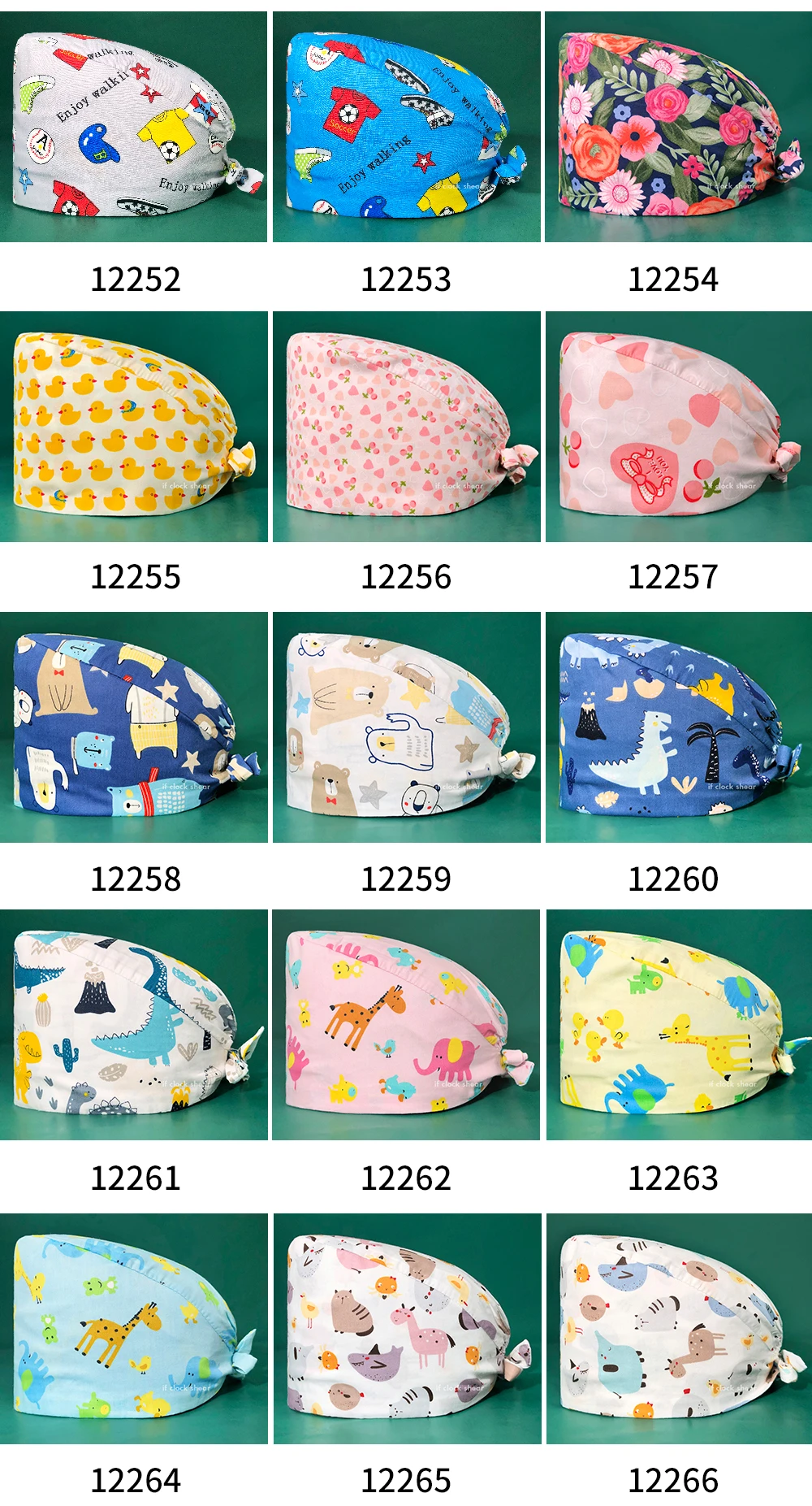 Регулируемые хлопковые медицинские шапочки с принтом животных
