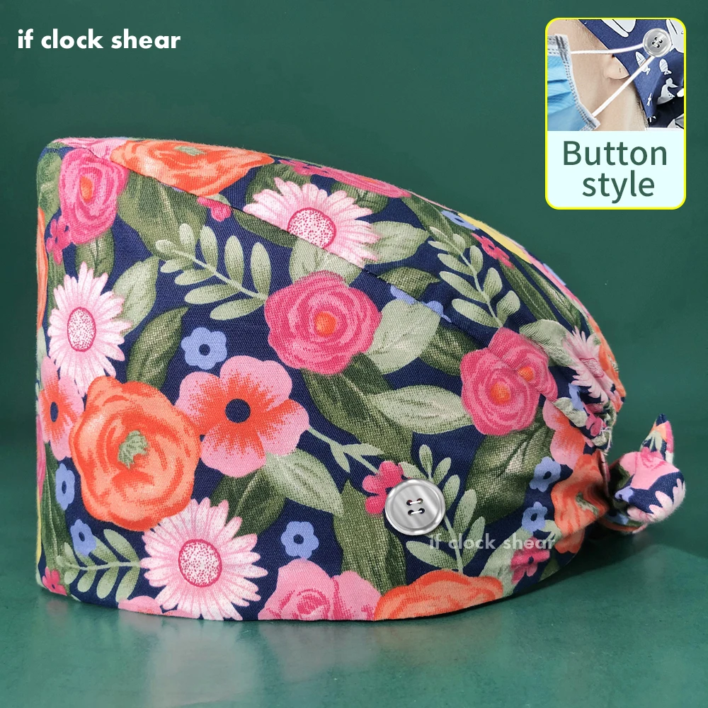 Модная медицинская хирургическая шапочка из чистого хлопка с цветоч...