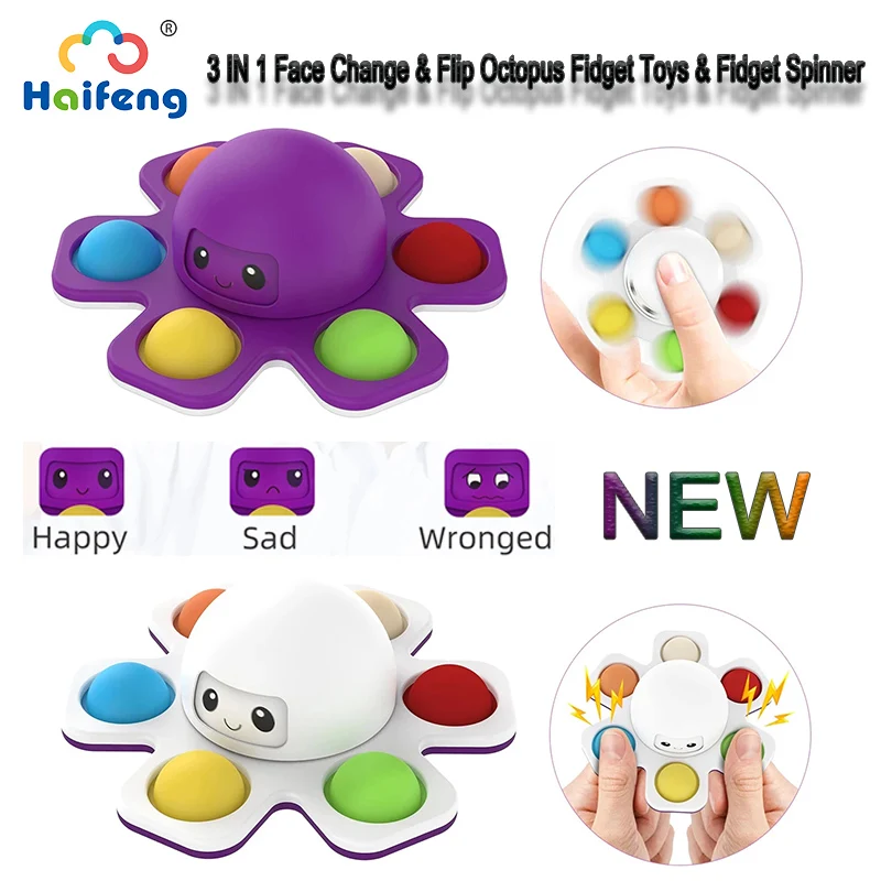 3-в-1 раскладной игрушечный Спиннер-осьминог, игрушки-антистресс, создавающие фантазию, пузырьки с эффектом попкорна, сменяющие лицо, игрушка для расслабления