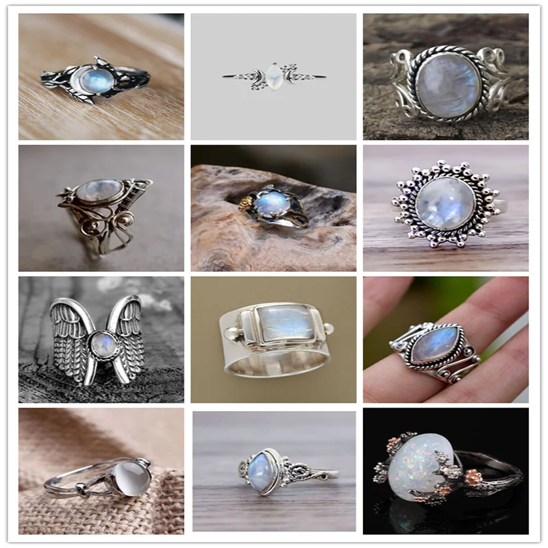 Винтажные пляжные ювелирные изделия женские кольца с лунным камнем ...