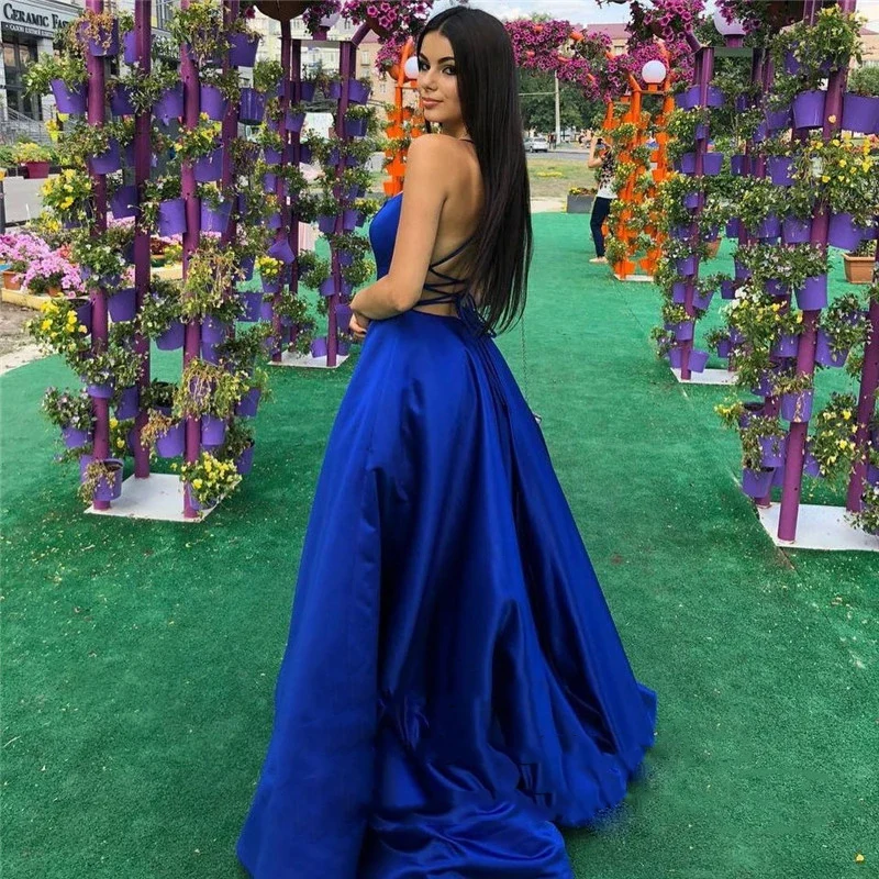 Женское вечернее платье AE0975, длинное синее платье для выпускного вечера, с открытой спиной и перекрестной шнуровкой, 2021