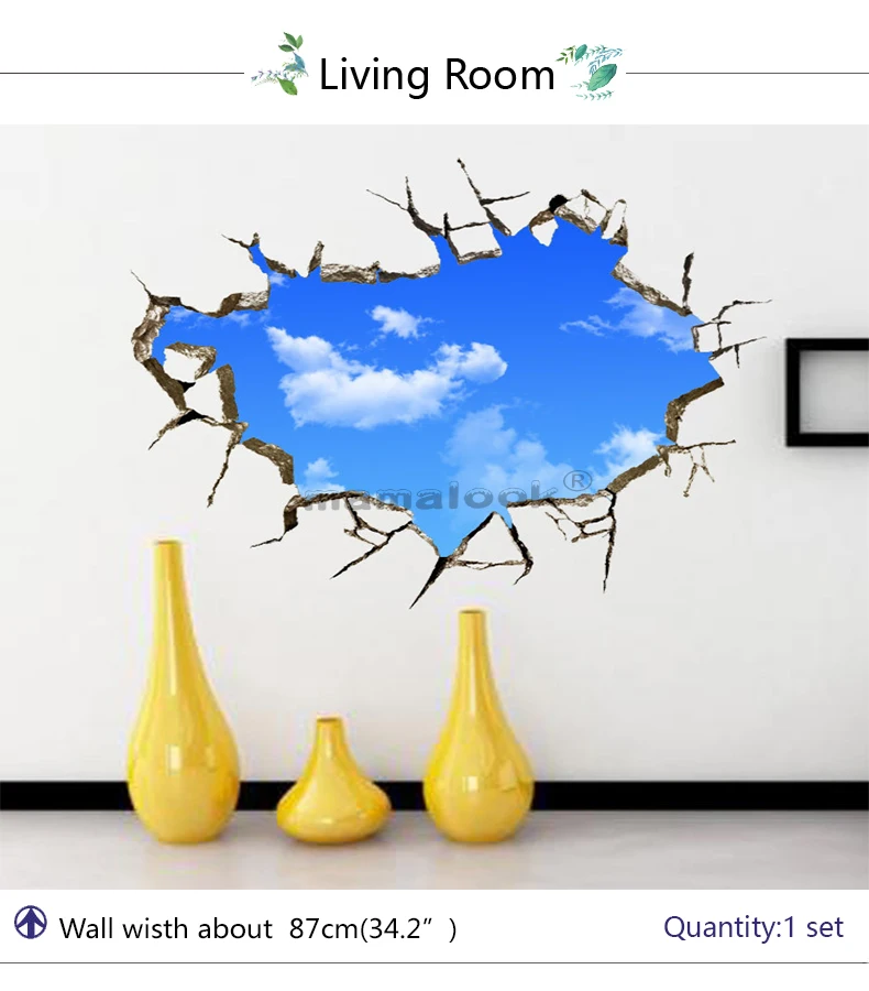 3d-наклейка на стену в виде голубого неба и белого облака, s-наклей...