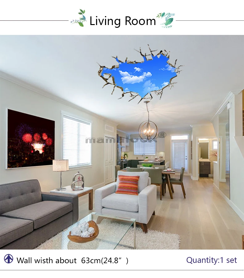Theme3D Blue Sky White Clouds Wall Stickers For Ceiling Roof