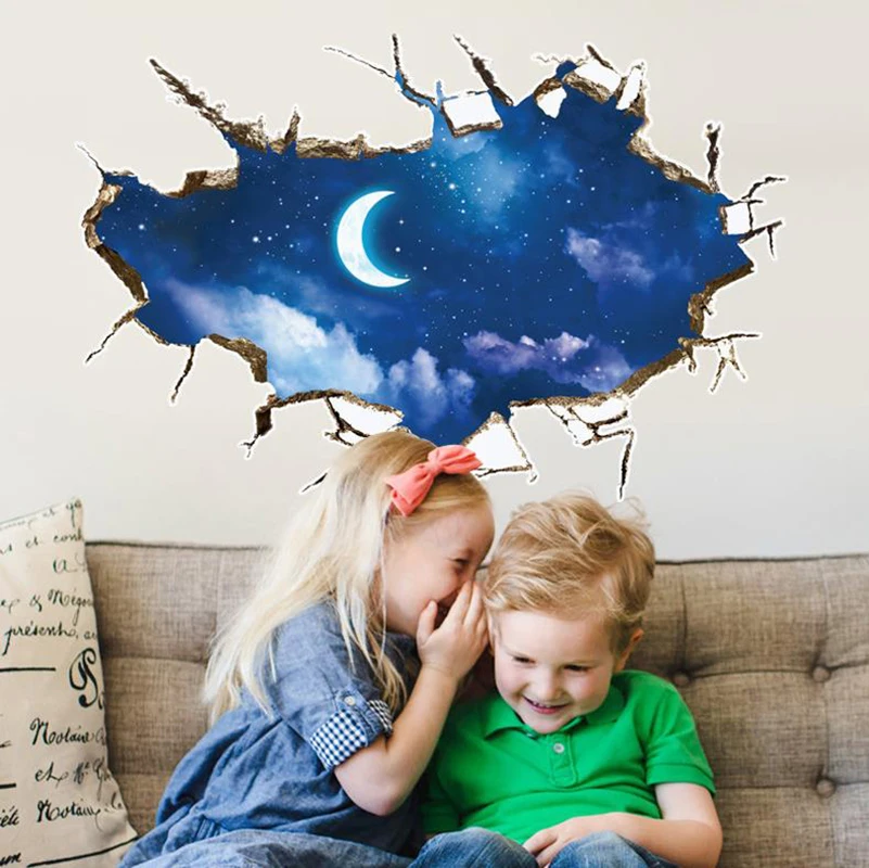 Самоклеящаяся Настенная роспись 3D голубое небо Наклейка Настенная облака для детской комнаты, потолка, крыши, домашнего декора