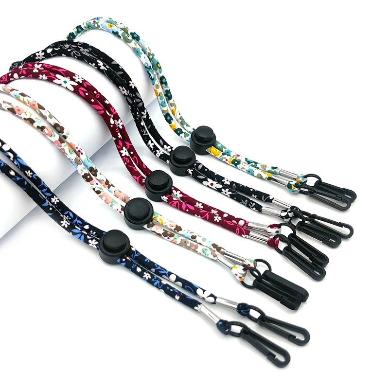 Шнурок для очков из маска с цветочным узором хлопка, регулируемый, защита от потери, защита от ветра, шляпа с цепью