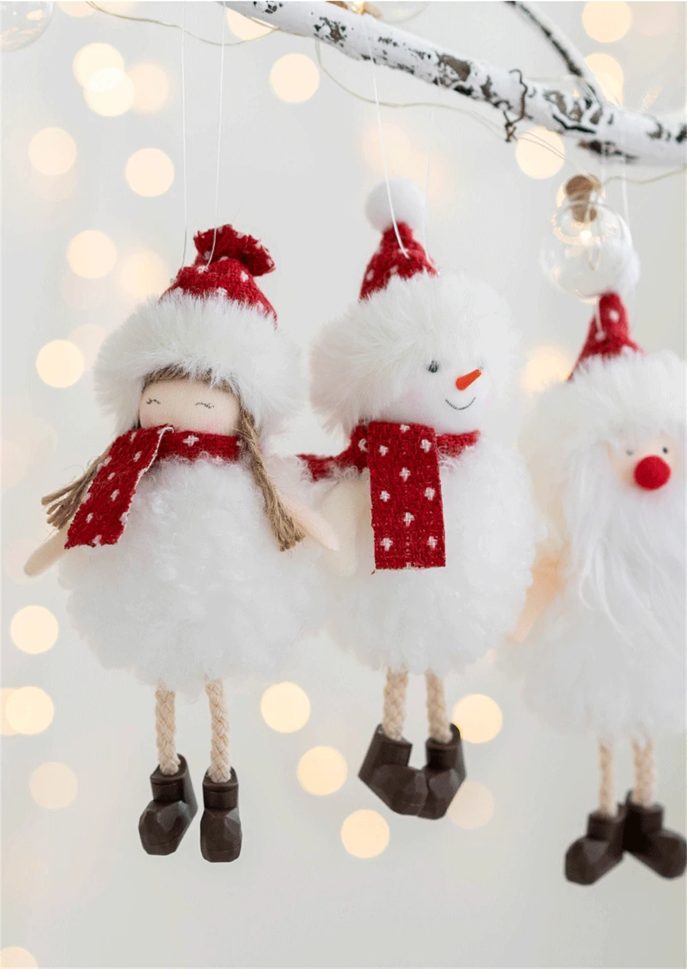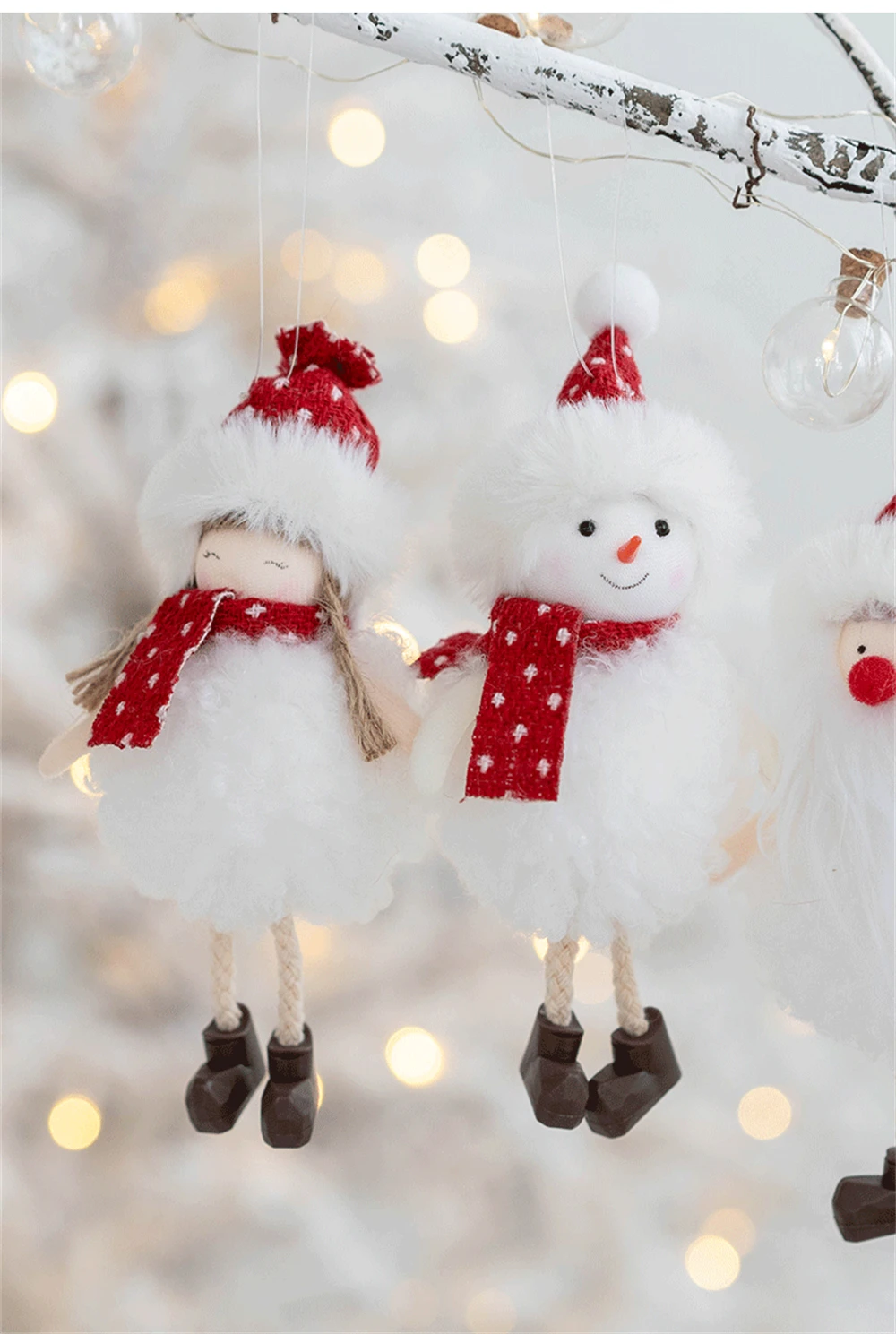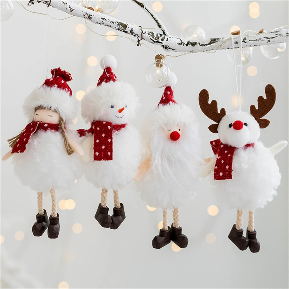 Маленький кулон Санта-Клаус, снеговик, плюшевый Ангел ручной работы, подвеска для девочки, украшение для рождественской елки, лось, рождественские украшения
