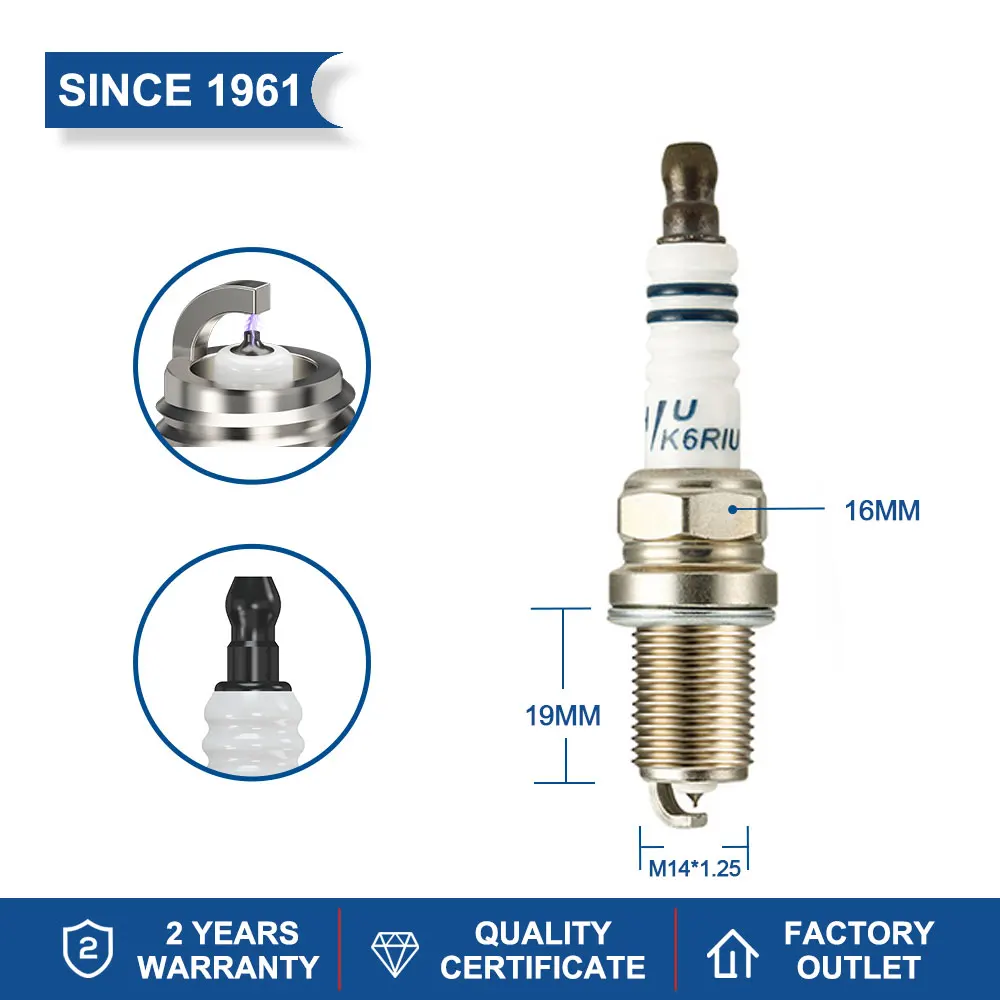 Иридиевая Свеча зажигания-BKR6EIX, K6RIU свечи зажигания Замена для 2011-2015 Chevy Cruze, 2012-2017 Chevy SonicЗамена свечи зажигания факела K6RIUNGK PFR6YNGK PFR5B-11NGK FR6EI【Fitment】замена для 11-15 Chevy Cruze, 00-06 BMW X5, 90-92 Toyota Corolla, 04-06 Audi A4. Замена для 92-95 01-05 BMW 325i, 96-00 BMW 328i, 03-05 Land Rover Range Rover и др.【Функциональность его функция заключается в разрядке импульсного высоковольтного электрического разряда от высоковольтного провода (провод горелки), обрыве воздуха между двумя электродами свечи зажигания, И генерирует электрическую искру для повода смешанного газа в газовом баллоне.【Специально разработанные свечи зажигания обеспечивают более длительный срок службы двигателя, повышенную топливную эффективность при длительном использовании по сравнению со стандартными свечами зажигания. С более холодным диапазоном тепла, чем Заводская вилка, что позволяет модифицировать производительность и выдерживать интенсивные условия.【Почему бы не попробовать 】 Материал более высокого качества, чем платина, устойчив к окислению и коррозии. Лучший выбор для высокопроизводительных двигателей. Сменная гоночная Свеча зажигания используется многими профессиональными водителями автомобилей.