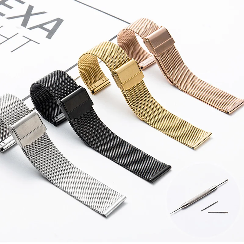 Ремешок Миланская сетка для часов, сменный Браслет из нержавеющей стали для безопасной пряжки DW, 12 мм 13 14 мм 16 мм 17 мм 18 мм 19 мм 20 мм 22 мм