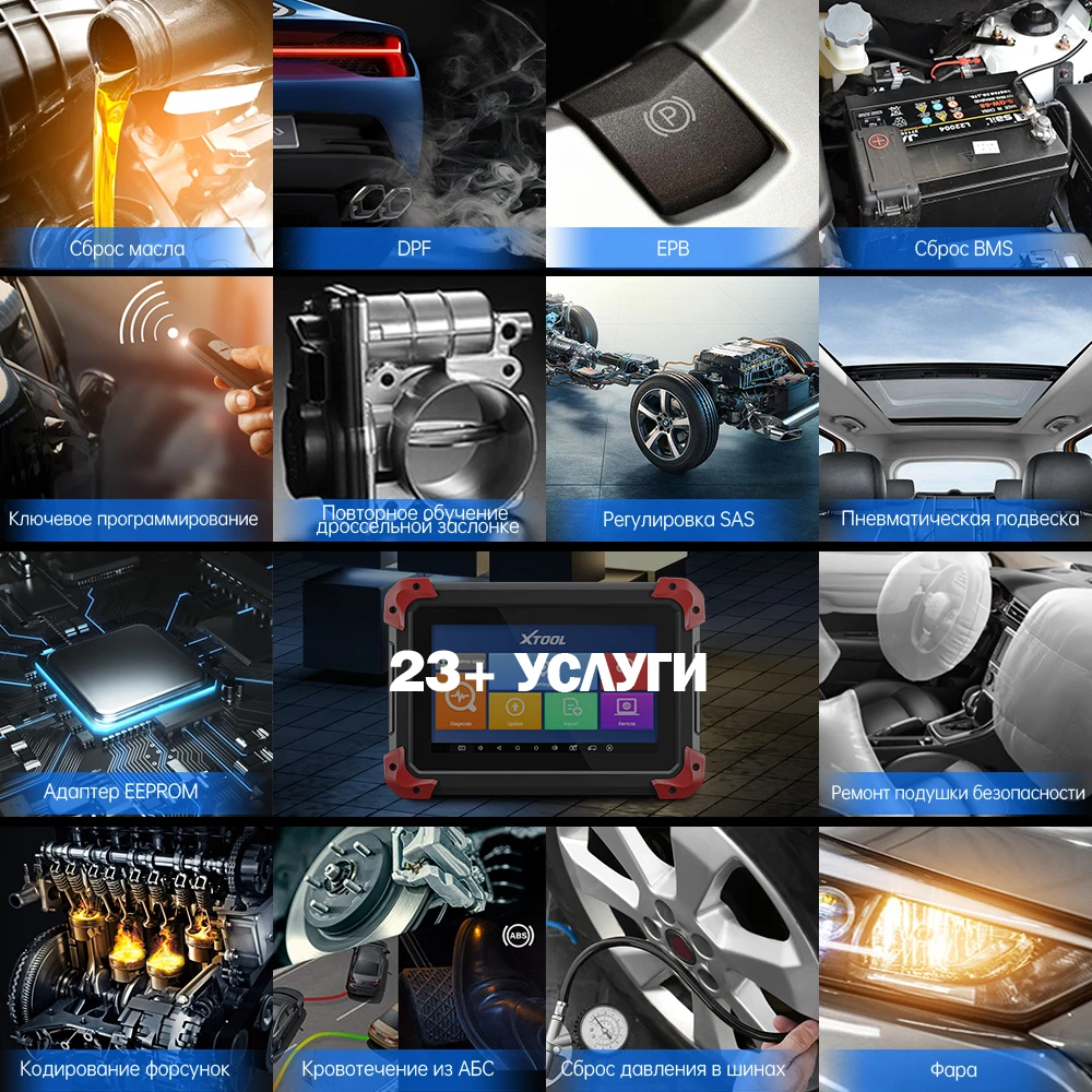 X100PAD PLUSXTOOL X100PAD PLUS Профессиональный сканирующий инструмент с полными возможностями для выполнения диагностики уровня OE для чтения/стирания DTCs, просмотра потока данных, замораживания кадра, чтения информации ECU, он может получить доступ и диагностировать все доступные Модули на широком диапазоне транспортных средств, включая PCM, ECM, EPS, PDM, TPM, BCM, ABS топливную систему, светильник и систему a/C и т. Д. С широким региональным транспортным средством КомбинезоныПолная система диагностикиДиагностическое приложение позволяет подключать данные к электронной системе управления испытательного транспортного средства для диагностики транспортного средства. Функциональные испытания приложения, извлекает диагностическую информацию о транспортном средстве, такую как коды неисправностей и событий и живые данные для различных систем управления транспортными средствами, таких как asABS, SRS, двигатель, трансмиссия, тормозная система, система выбросов, топливная система, светильник, система стеклоочистителя и т. Д.