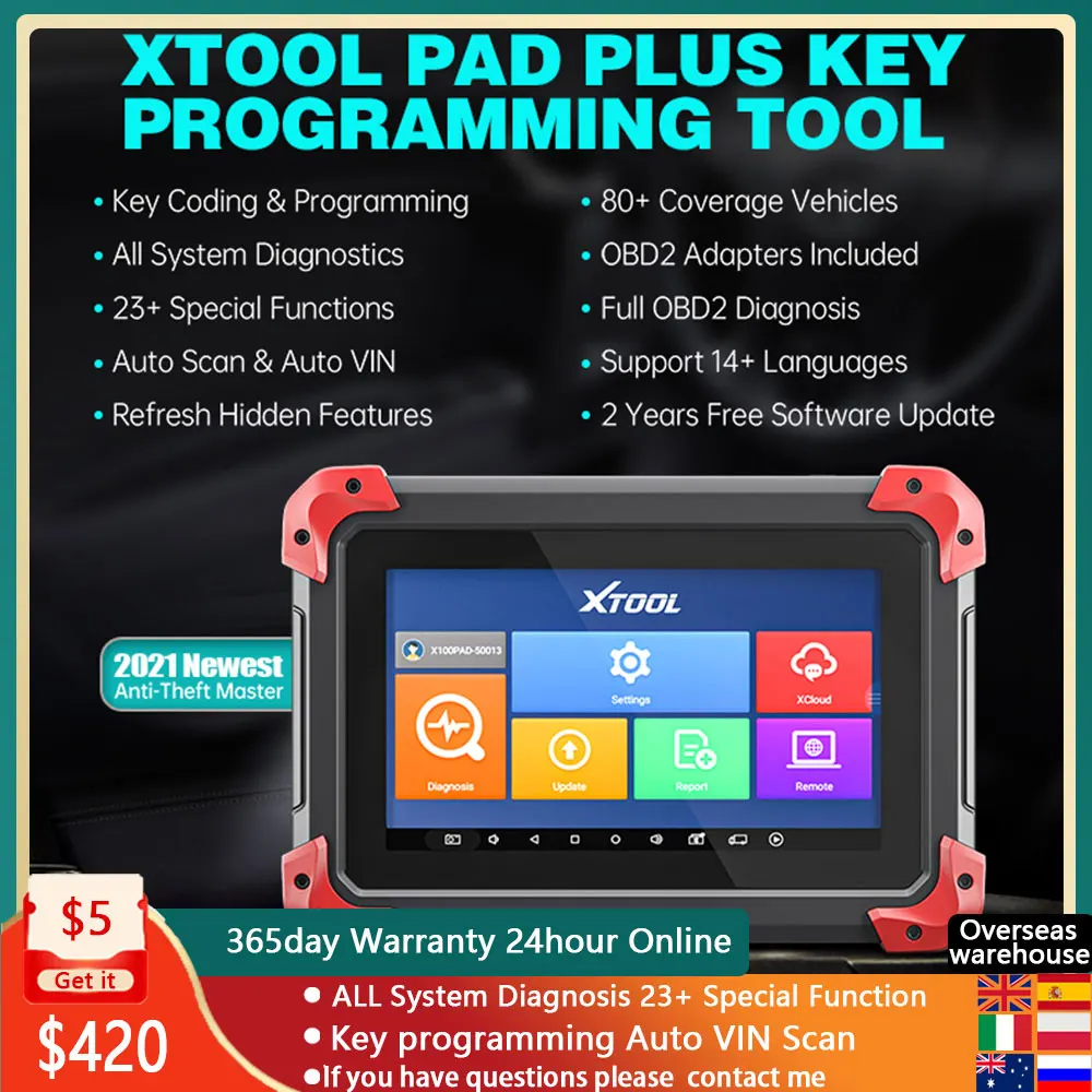Программатор автомобильных ключей XTOOL X100 PAD PLUS, диагностический сканер OBD2, считыватель кодов IMMO EPB DPF BMS 24, функция сброса, бесплатное онлайн обновление