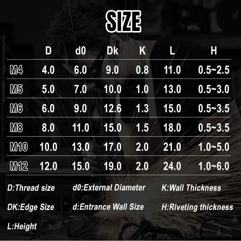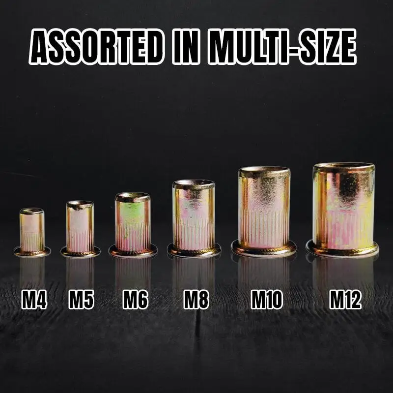 ►►ASSORTED в многоразмерныеМетрические размеры ассорти вM4, M5, M6, M8, M10, M12. Идеальный комплект заклепокУдовлетворить ваши потребности.