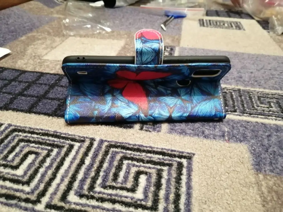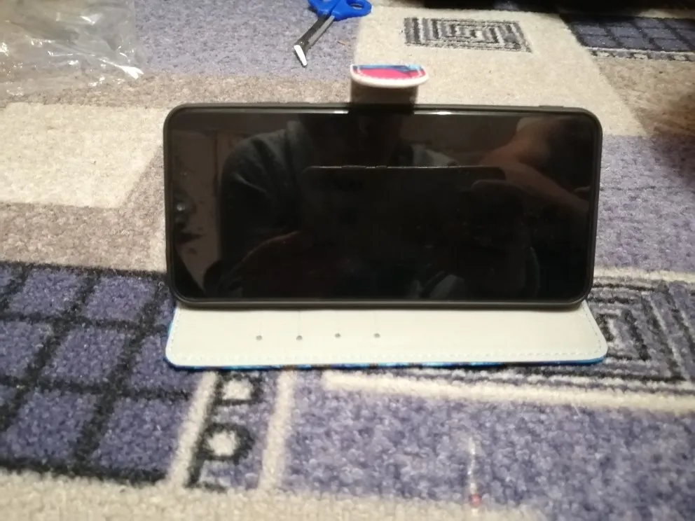 Довольно жёсткий типа кожзам, принт качеством слегка выше среднего, отверстия под камеру и палец на месте, кнопки на бампере тоже. Очень маленькое отверстие под палец, теперь разблокировать можно только кончиком мизинца, но в целом пойдет. До Питера в сборной посылке дошел за 3 недели.