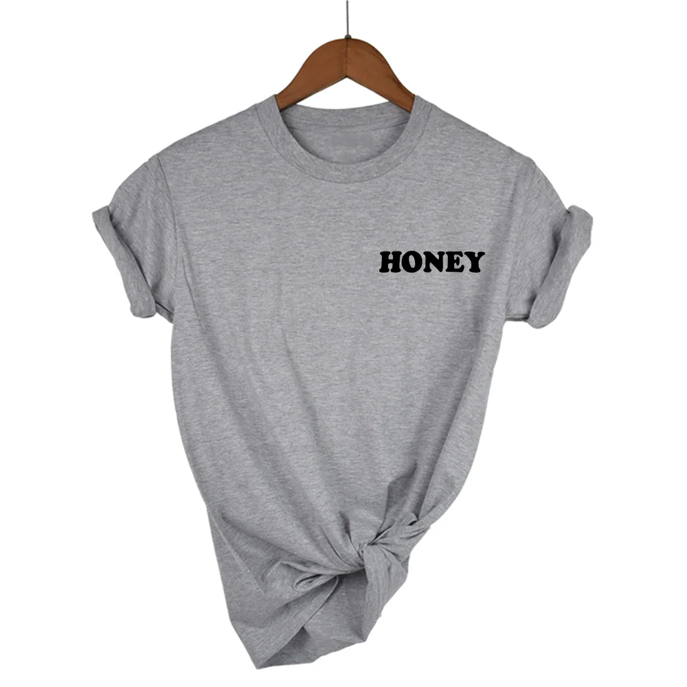 Желтая одежда с карманом Honey, Повседневная футболка Харадзюку с надписью Honey, хлопковая футболка в эстетическом стиле для девушек, летняя футболка с круглым вырезом